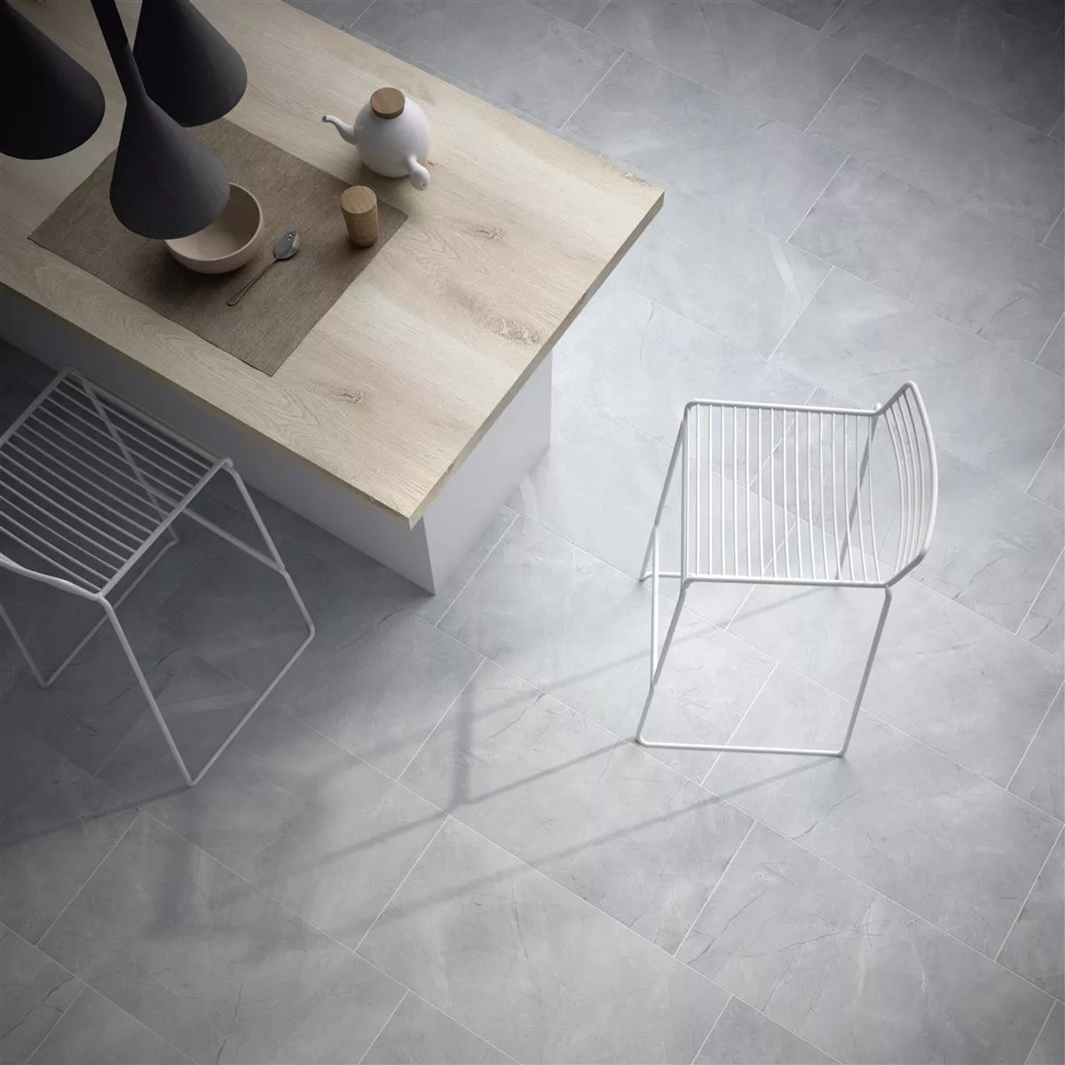 La surface de ces carreaux en grès cérame est à la fois émaillée et polie, leur conférant un aspect élégant et de grande qualité. Leur design, d'un gris raffiné, est très naturel. De plus, ils sont compatibles avec le chauffage au sol, pour un confort accru durant les mois les plus froids.