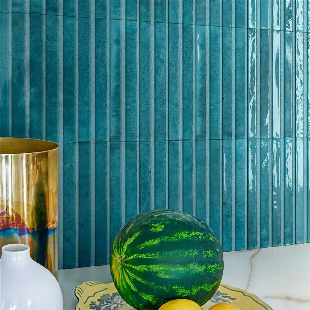 Découvrez la polyvalence du carrelage mural en grès cérame Artemis. Idéal pour diverses pièces intérieures telles que cuisines, salles de bains, buanderies, débarras, couloirs et salons, ce carrelage confère à votre espace une esthétique moderne et épurée. Sa couleur bleu marine brillante et émaillée crée un effet 3D unique.