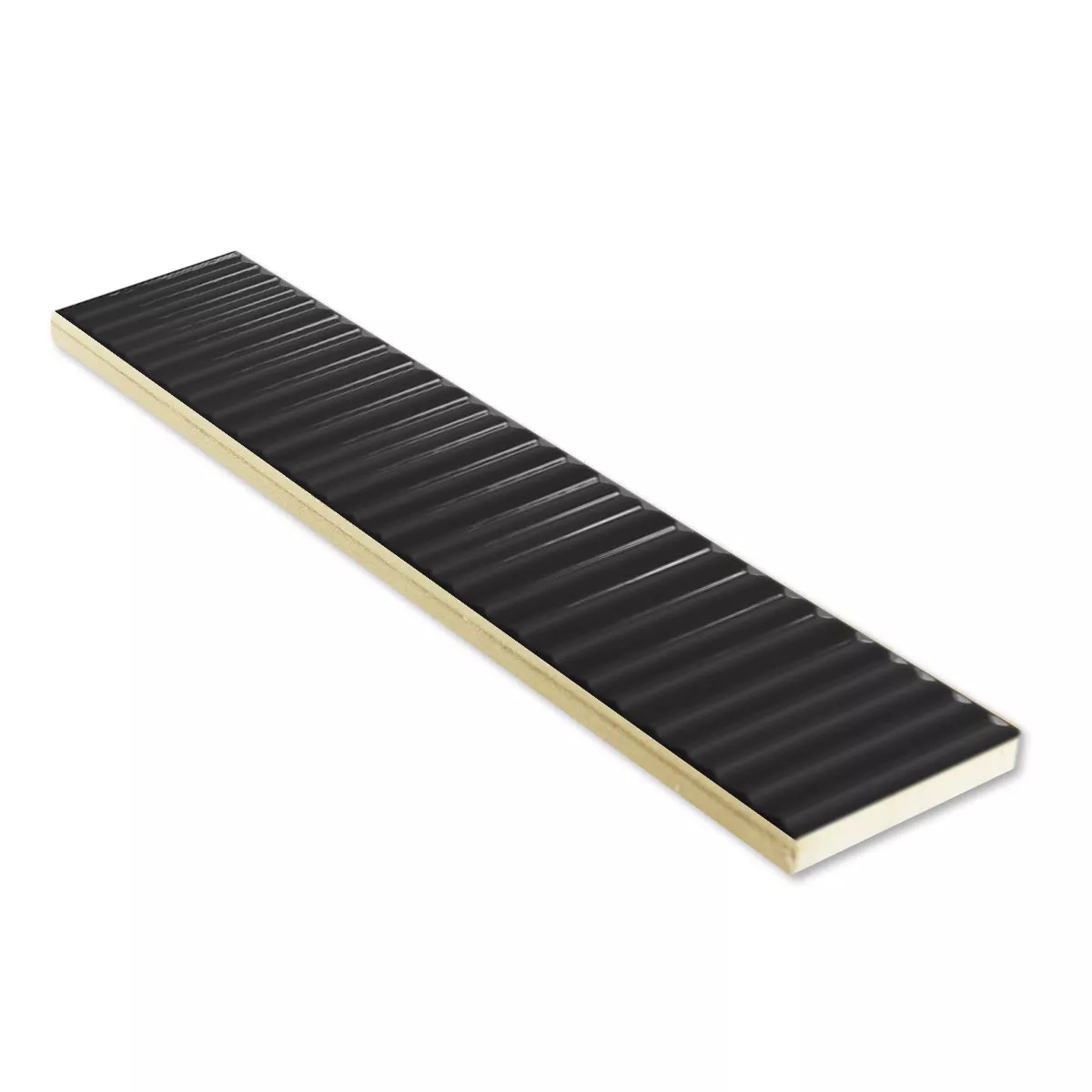Carrelage Mural Avila Relief Noir Brillant 5x30cm