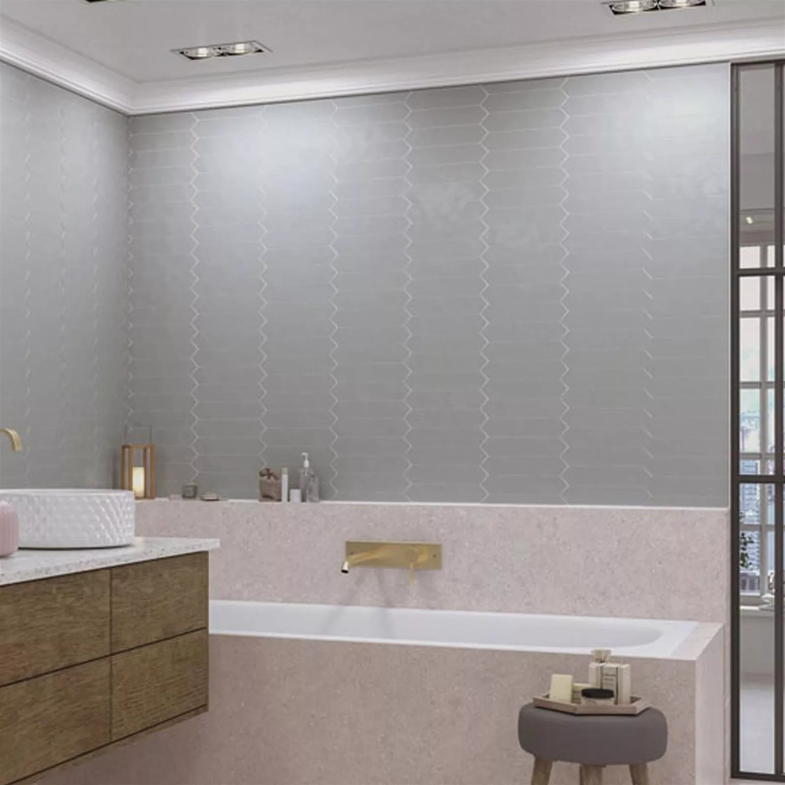 Avec une épaisseur de 8,2 mm, le carreau offre la stabilité nécessaire, tandis que les dimensions de 6,5 x 33,2 cm au format hexagonal permettent un design moderne et attrayant. Ces carreaux sont idéaux pour le revêtement mural de divers domaines, notamment les salles de bains, les cuisines, les salons et les douches, et sont particulièrement adaptés aux zones humides.