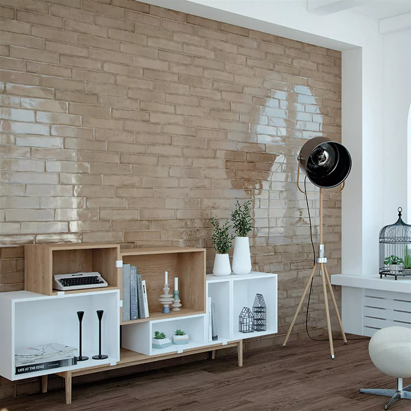 Carrelage Mural Maestro Ondulé Brillant Brun Clair 7,5x30cm