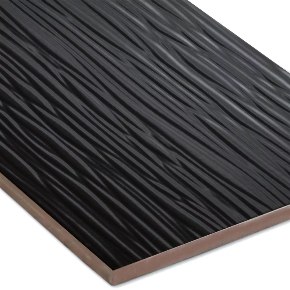 Carrelage Mural Norway Structuré Brillant 25x50cm Noir