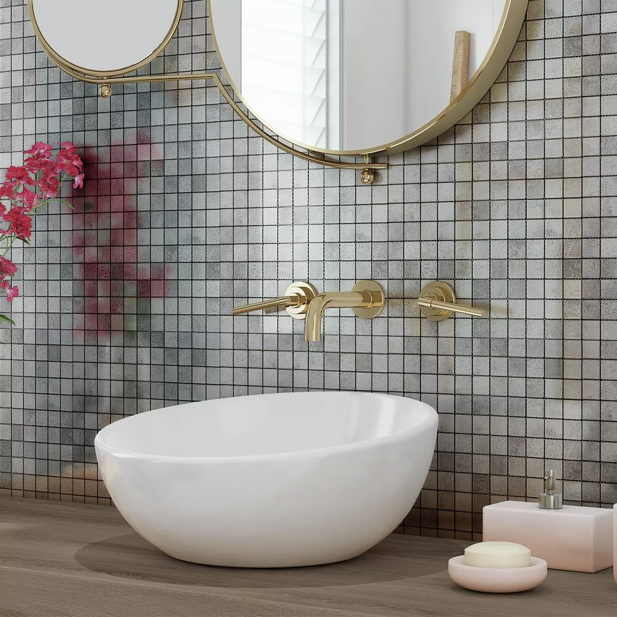 Le carreau de mosaïque en céramique Terraviva en gris élégant donne à n'importe quelle pièce un aspect ciment moderne tout en apportant fonctionnalité et style à vos pièces. La finition mate et la taille des pierres de 23 x 23 mm offrent une esthétique épurée et contemporaine. Avec le tapis de carrelage pratique mesurant 29,7 x 29,7 cm, déjà collé sur un filet et prêt à être posé, la pose aussi bien sur les murs que sur le sol est particulièrement simple et précise.