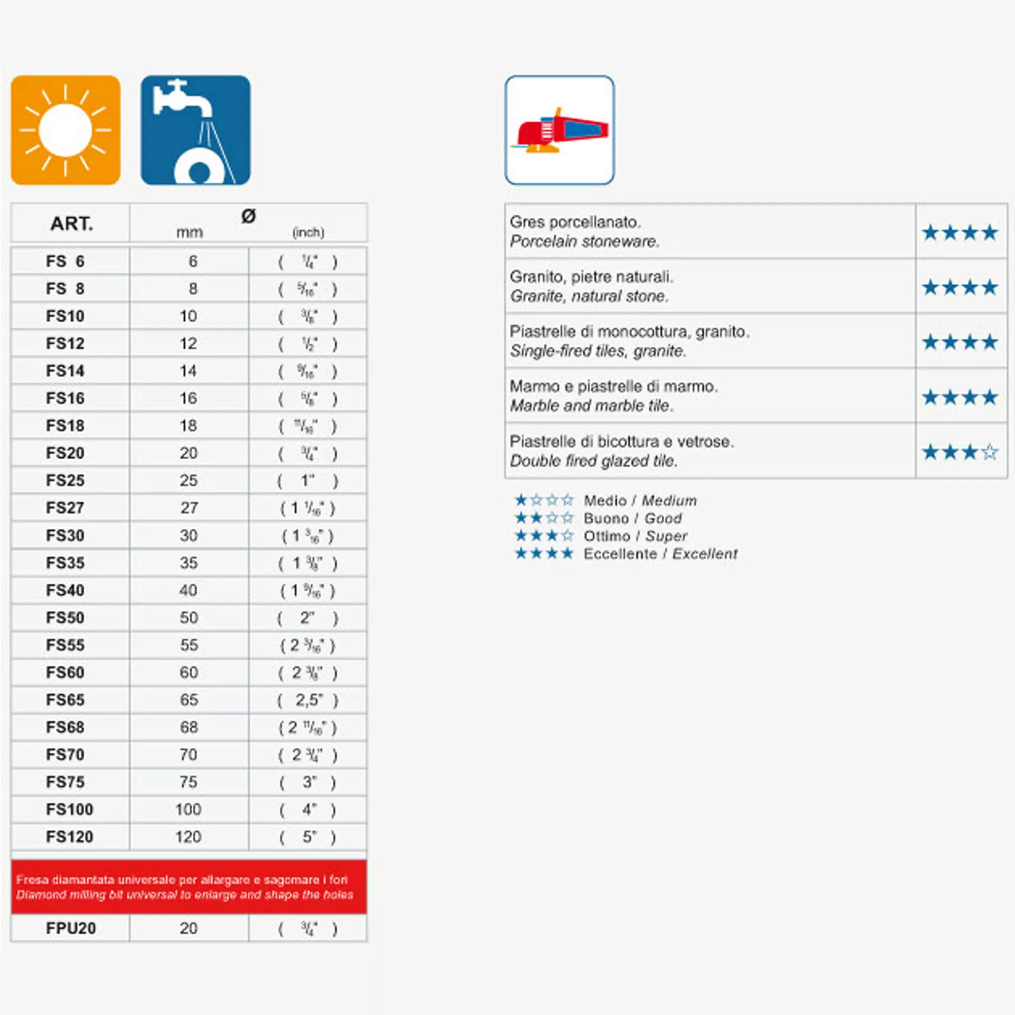 Avec la couronne diamantée, vous disposez de nombreuses options pour percer un très bon trou. Parce que le diamant est connu pour être le minéral le plus solide au monde, vous avez un travail très propre et précis, que vous pouvez identifier à tout moment avec cette perceuse. Vous pouvez effectuer un forage à sec avec la perceuse. C'est très facile et ça marche toujours. De plus, le résultat est très précis et fin. Vous pouvez également traiter de nombreux autres matériaux avec cette perceuse. Cela inclut également la céramique. C'est souvent le cas avec la céramique qui se fissure lors du perçage et l'ensemble de l'objet se casse. Ce n'est pas le cas ici. Avec la perceuse, vous obtenez toujours un bon résultat. Même le granit, une pierre très dure, peut facilement être percé avec le foret. De cette façon, vous pouvez vous assurer que ce travail peut également être effectué facilement. Le grès cérame est également facile à travailler.