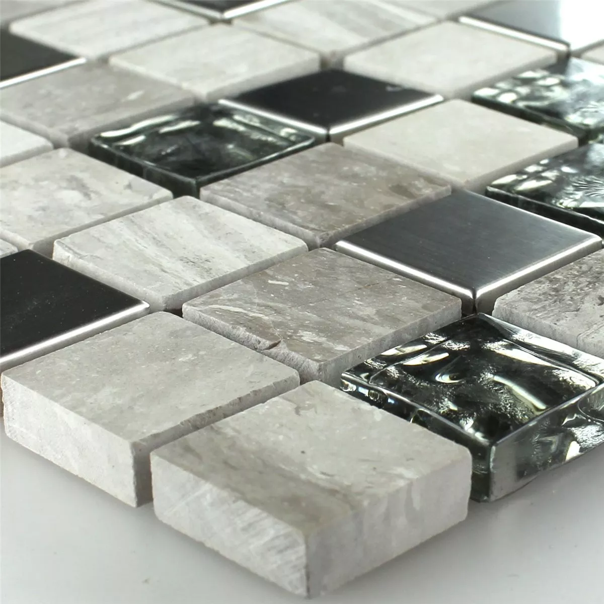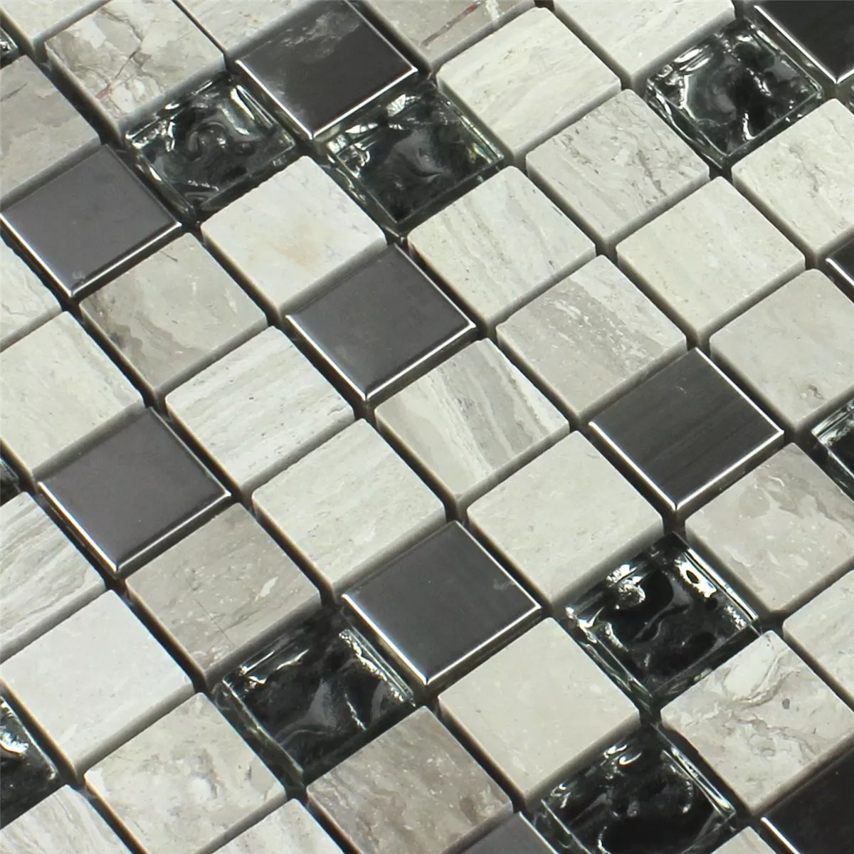 Échantillon Mosaïque Verre Acier Inoxydable Gris