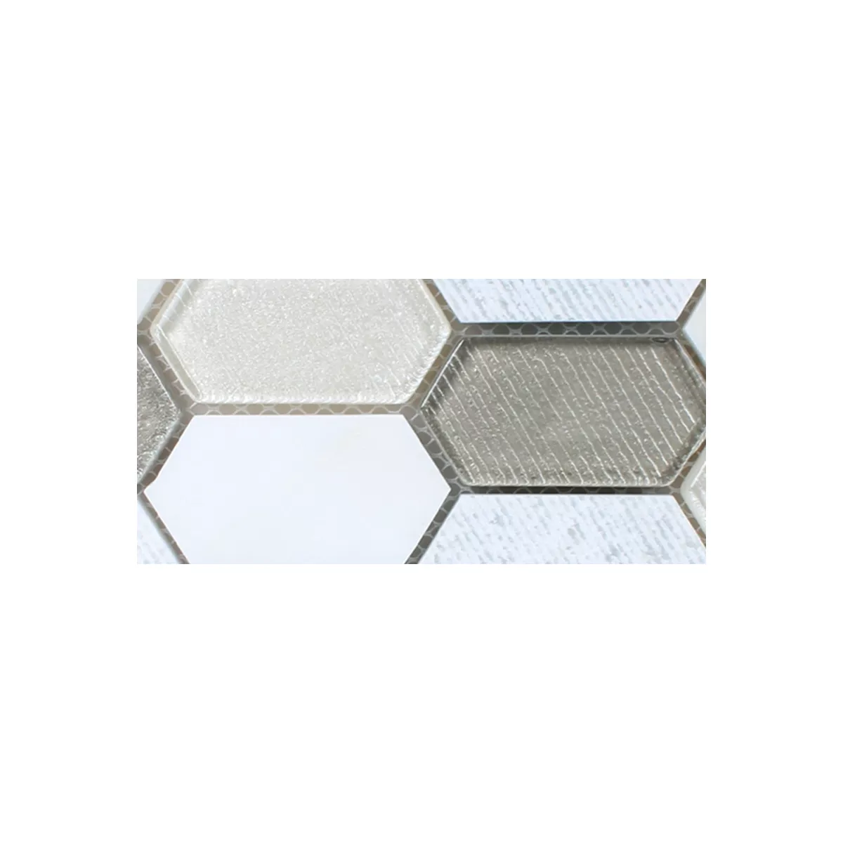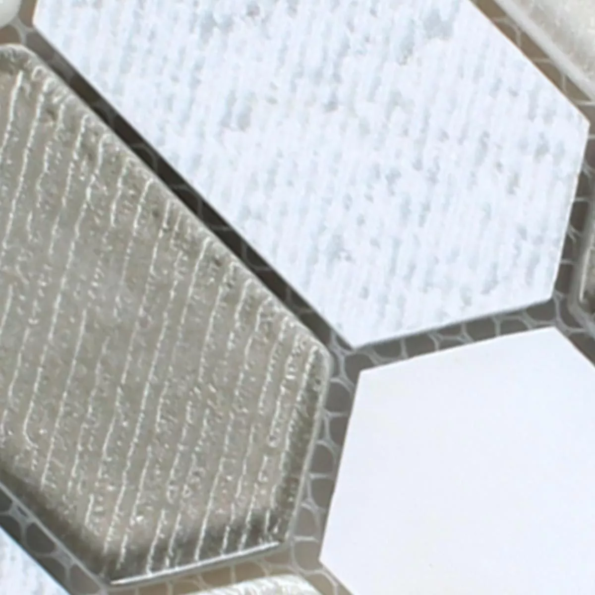 Échantillon Carrelage Mosaïque Februata Hexagone Blanc Beige Gris
