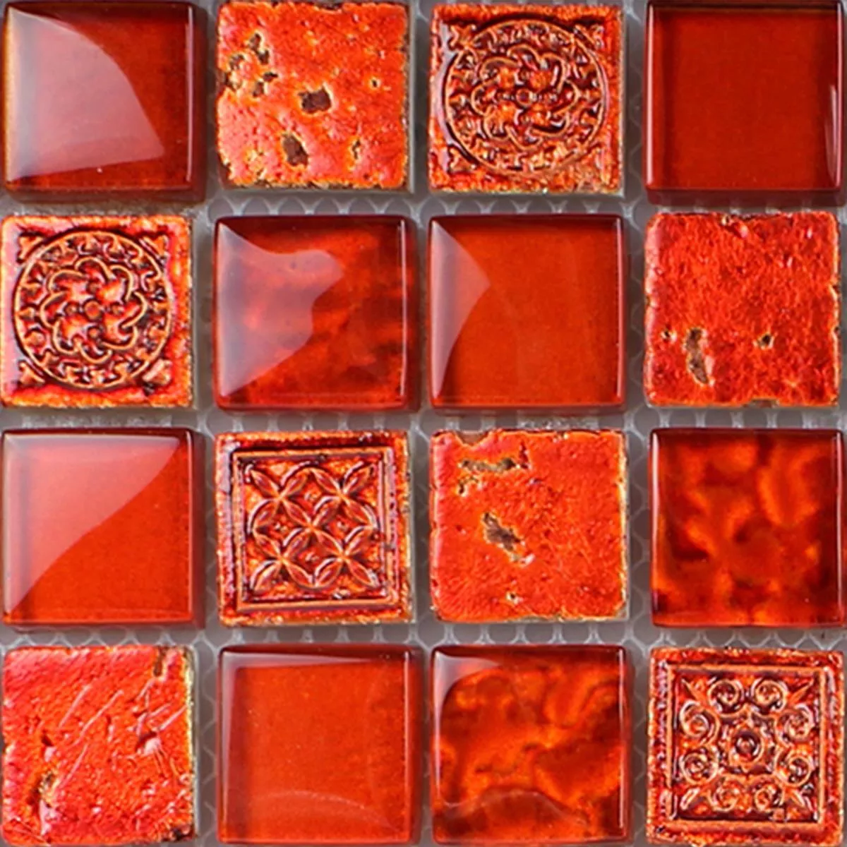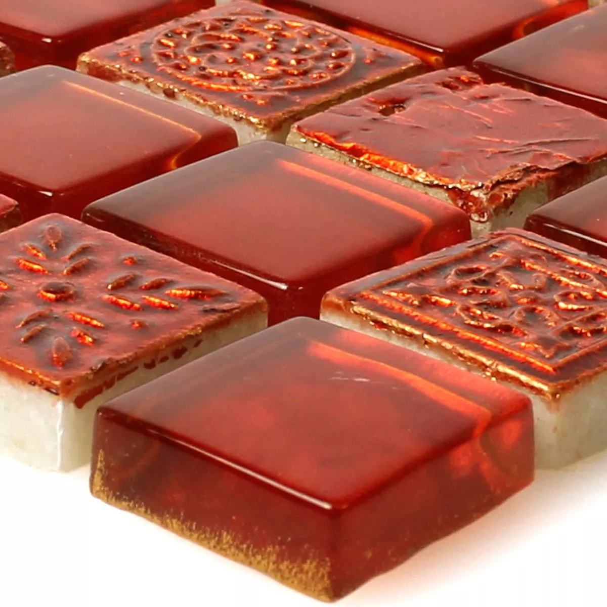Échantillon Carrelage Mosaïque Georgia Verre Pierre Naturelle Mix Rouge