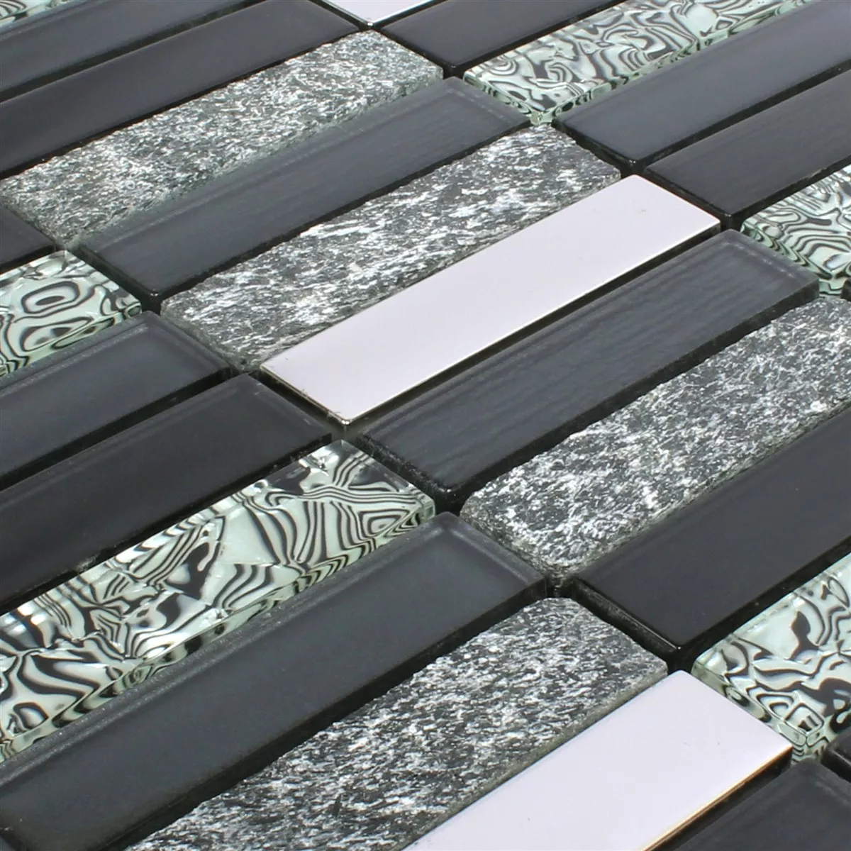Échantillon Carrelage Mosaïque Magia Verre Pierre Naturelle Mix Noir