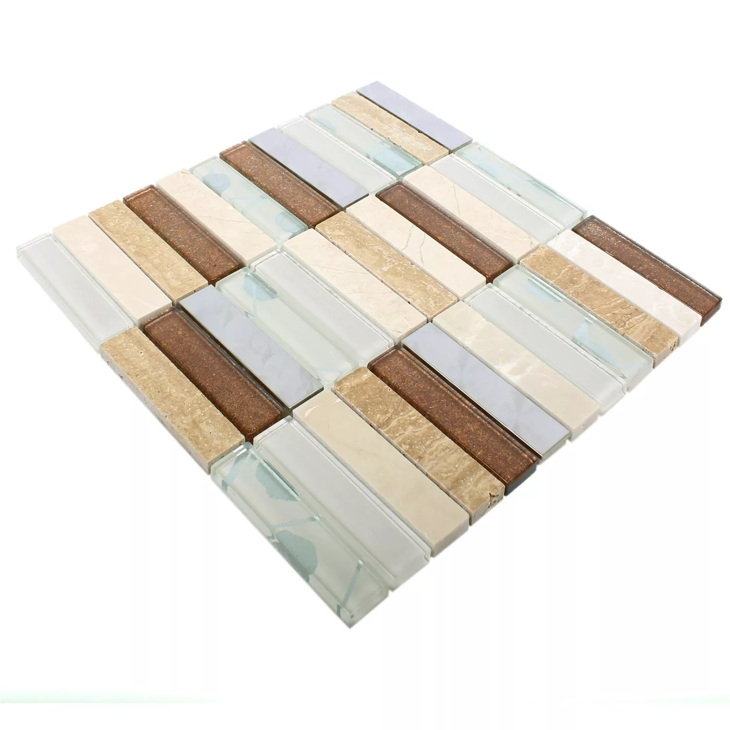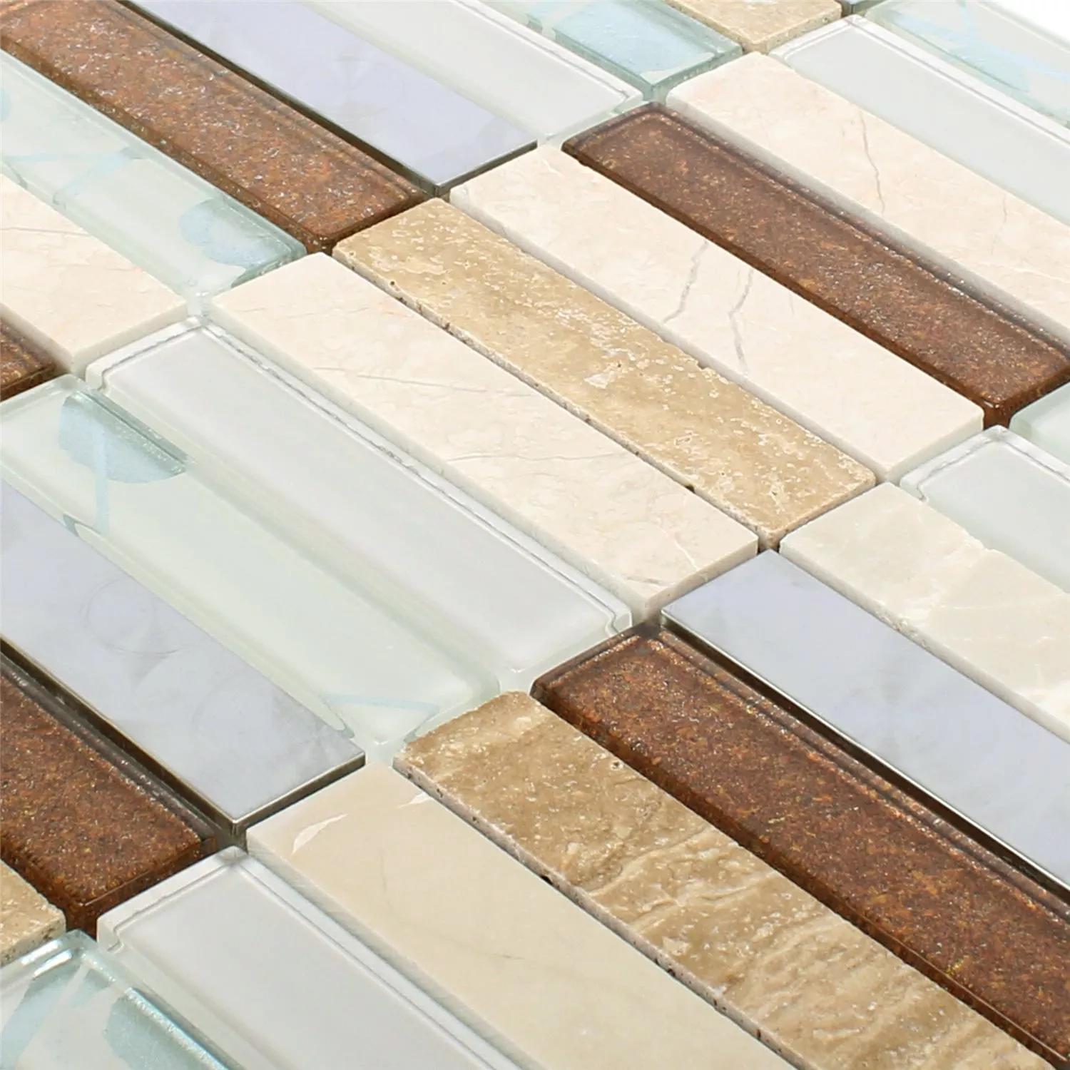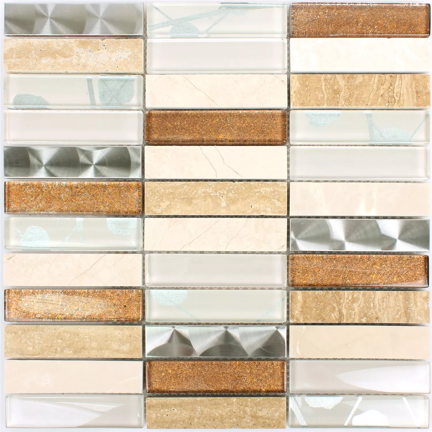 Échantillon Carrelage Mosaïque Musical Verre Pierre Acier Mix Beige