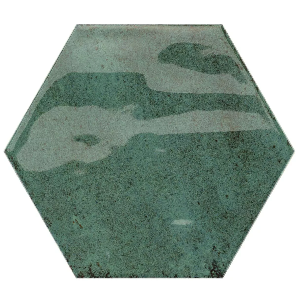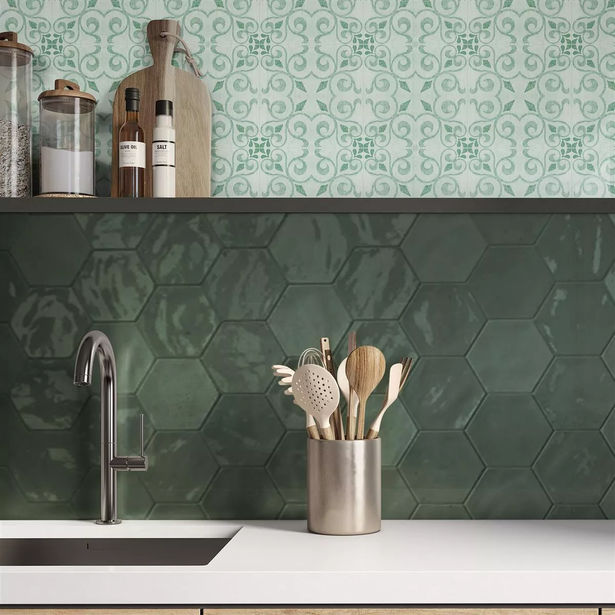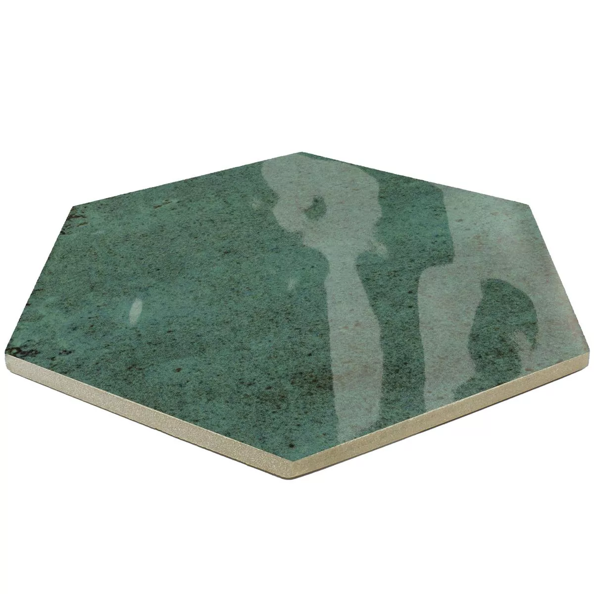 Échantillon Carrelage Mural Arosa Brillant Ondulé Hexagone Vert Émeraude 17,3x15cm
