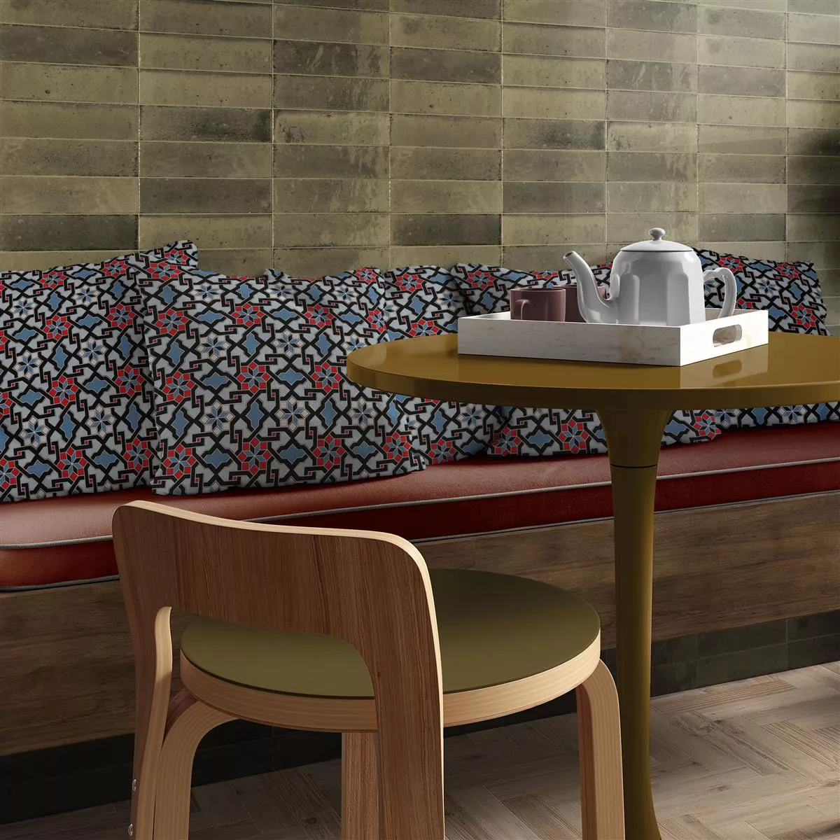 Échantillon Carrelage Mural Arosa Brillant Ondulé Vert Olive 6x25cm