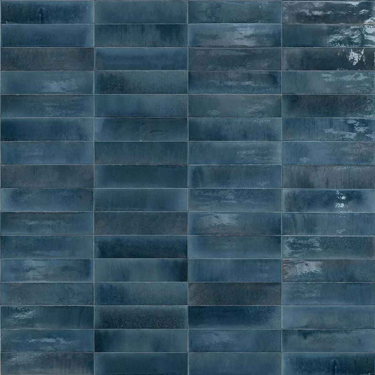 Échantillon Carrelage Mural Laguna Brillant Ondulé Bleu 6x24cm