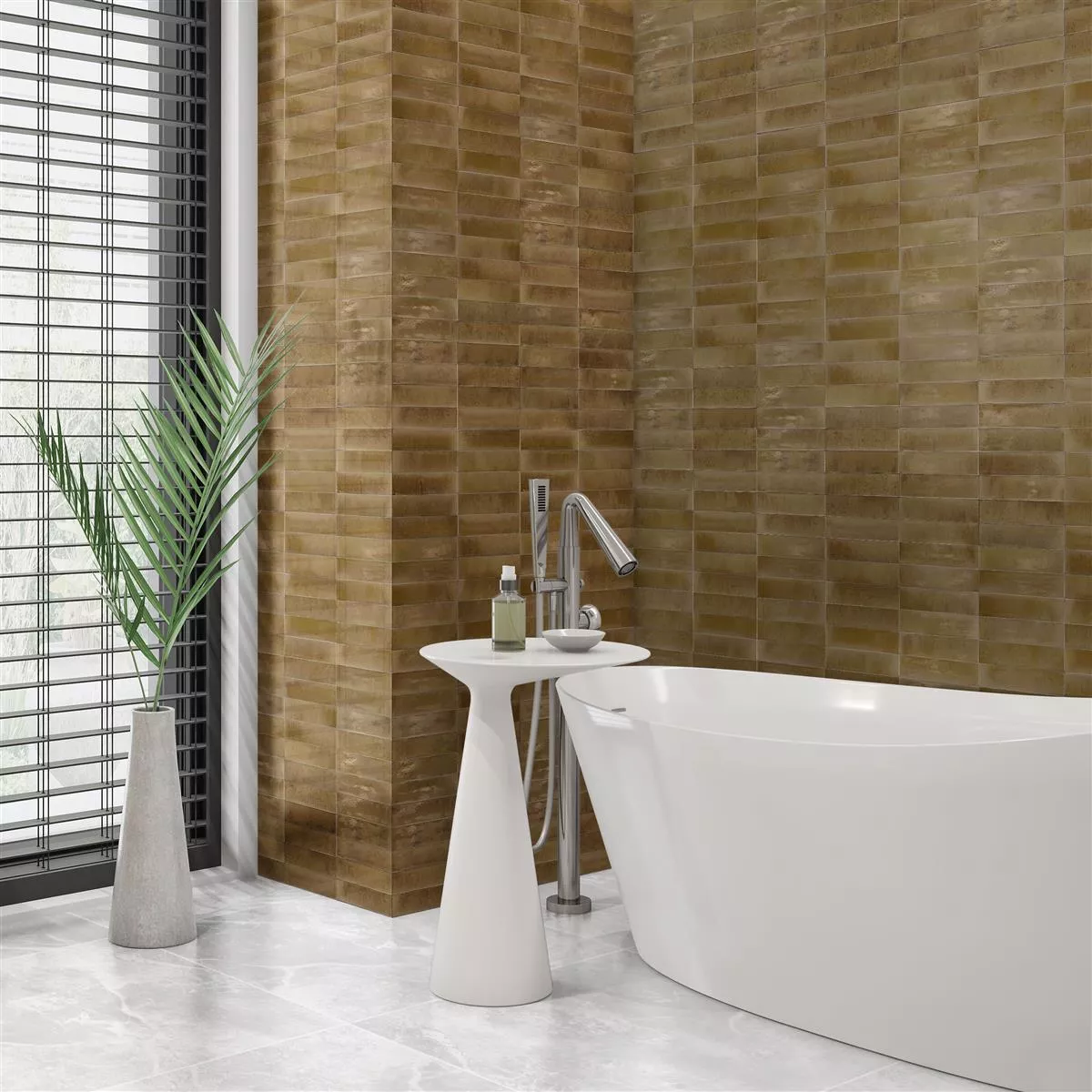 Échantillon Carrelage Mural Laguna Brillant Ondulé Brun 6x24cm