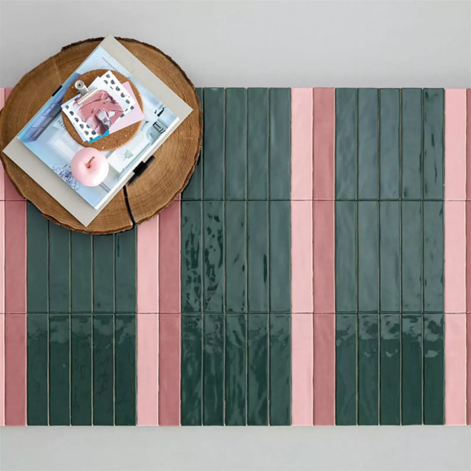 Échantillon Carrelage Mural Montreal Ondulé Vert Foncé 5x25cm