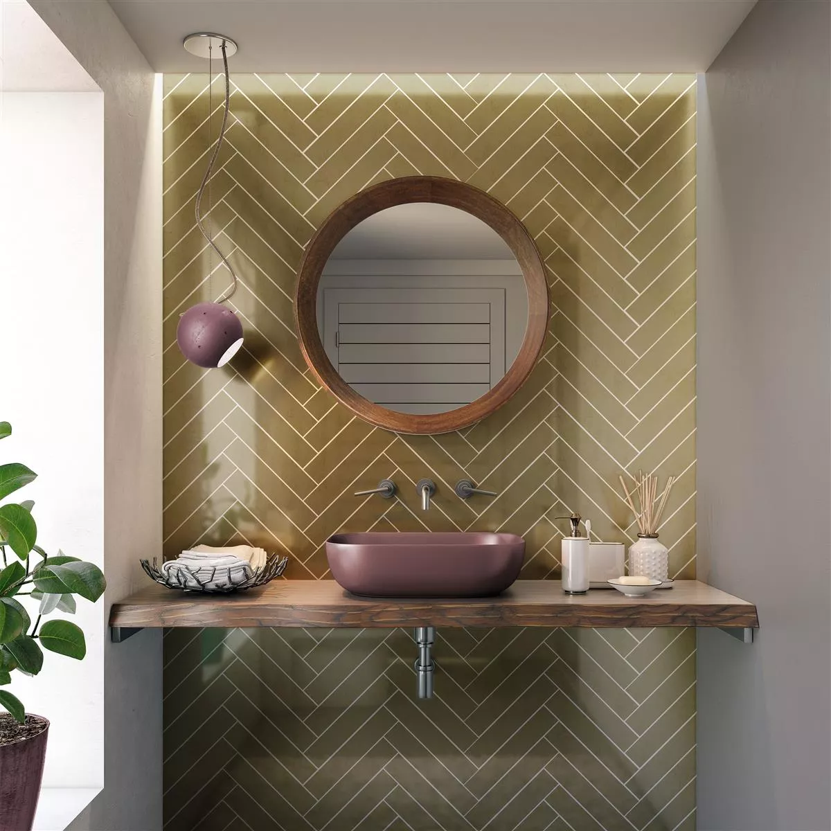 Échantillon Carrelage Mural Tamaris Flora Brillant Or Ondulé 5x25cm