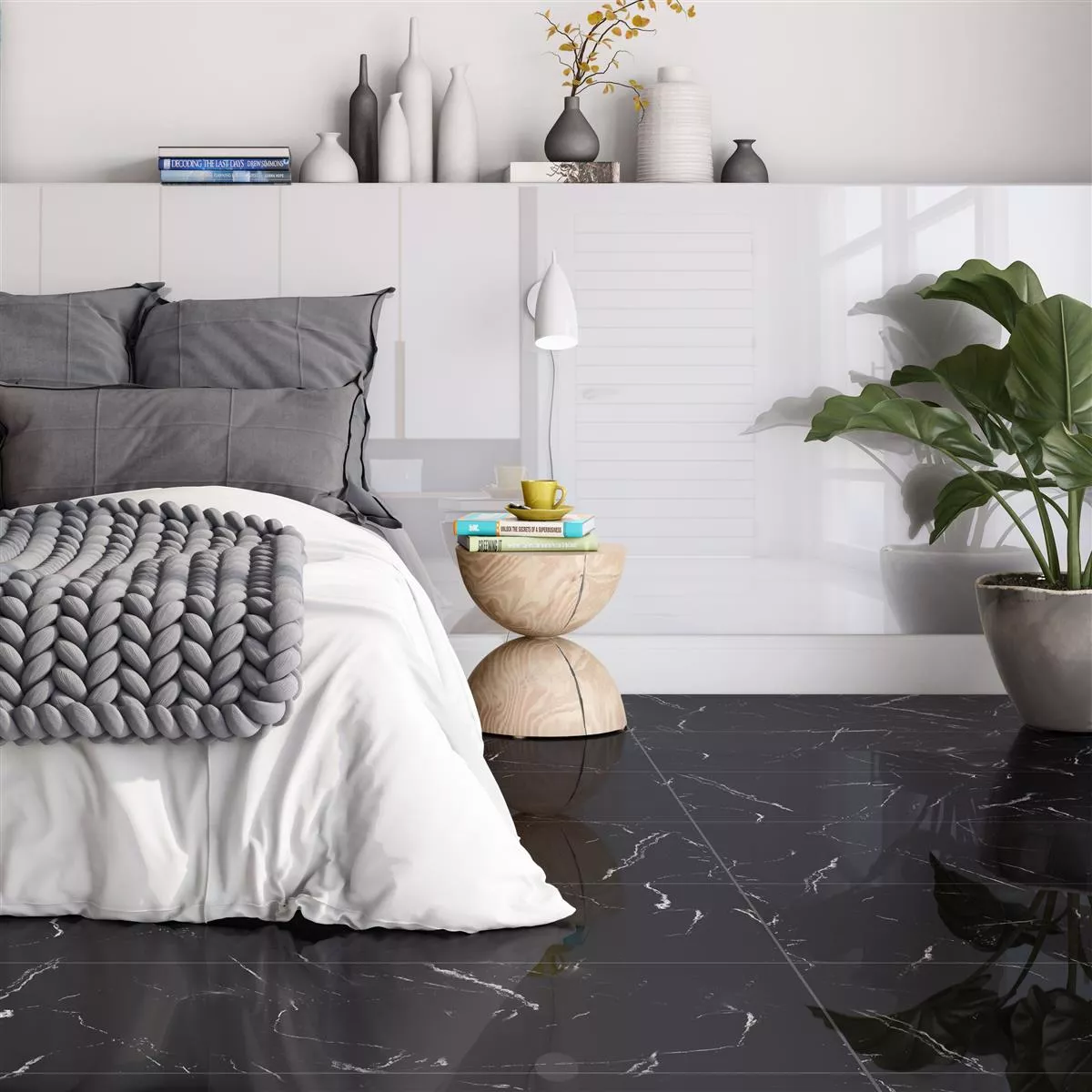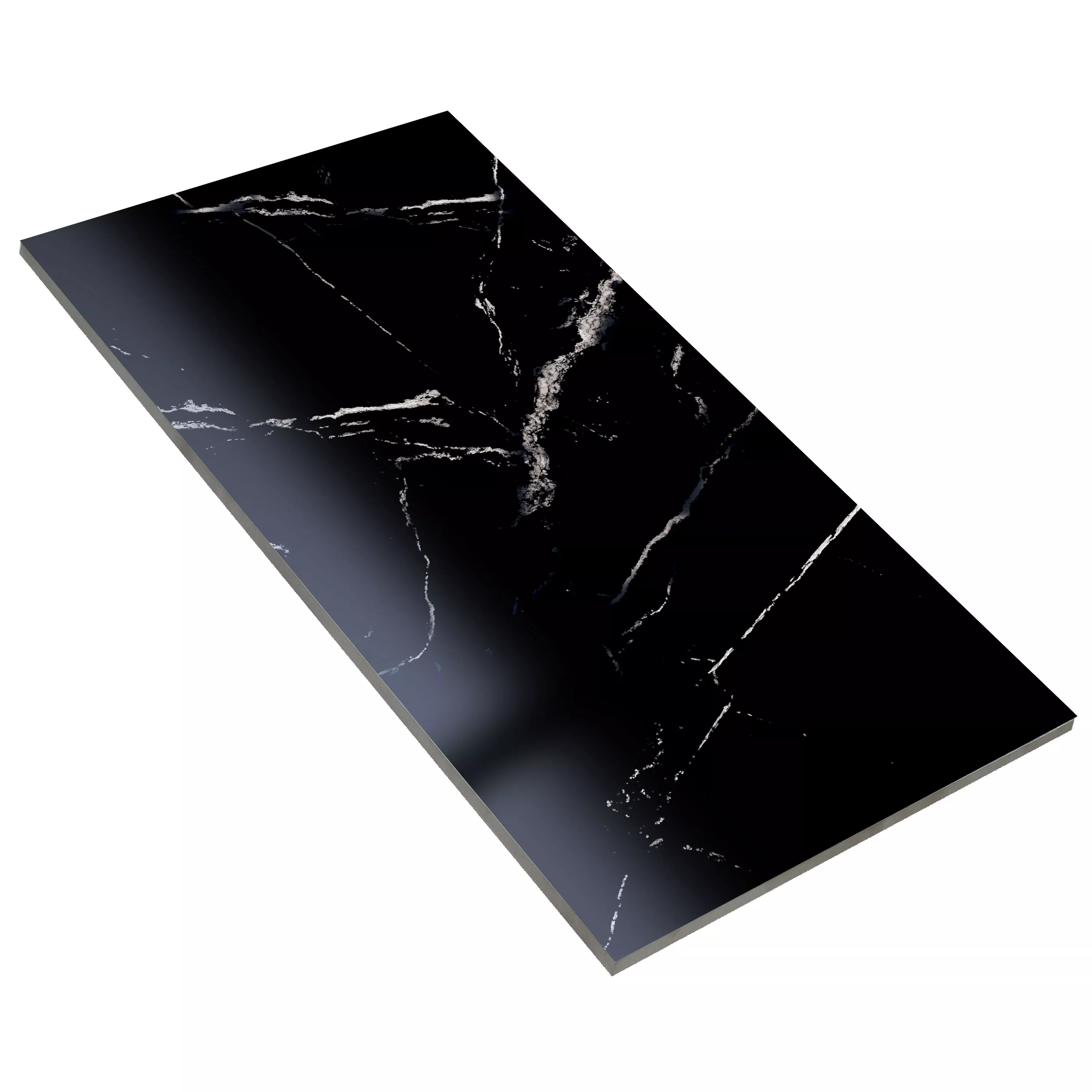 Échantillon Carrelage Sol Et Mur Louisburg Statuario Poli Brillant Noir 60x120cm