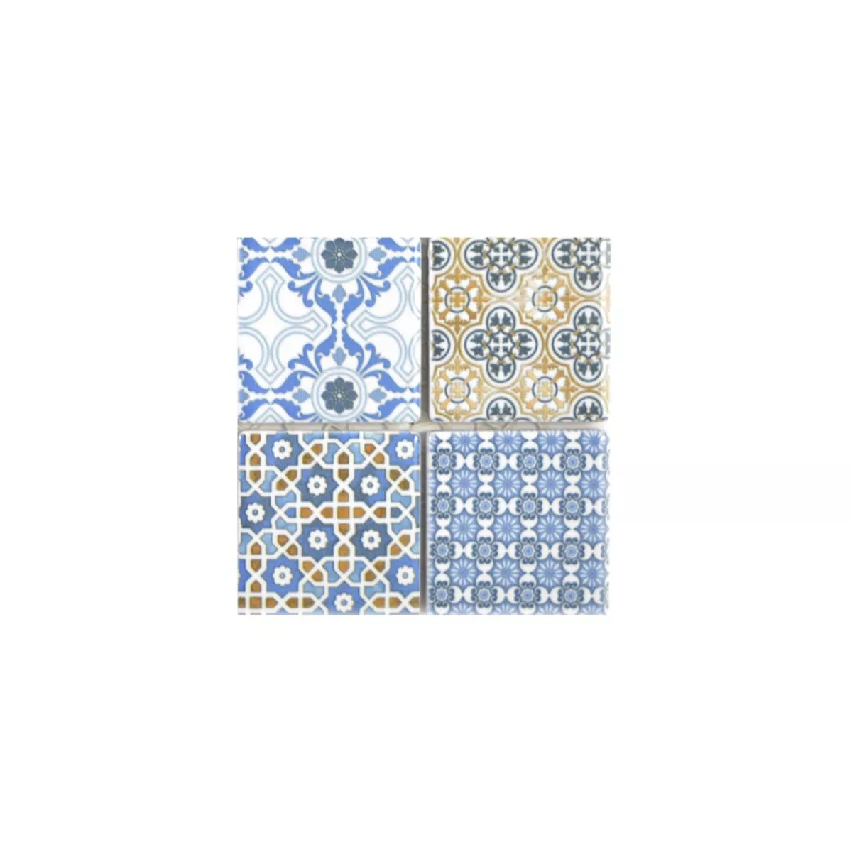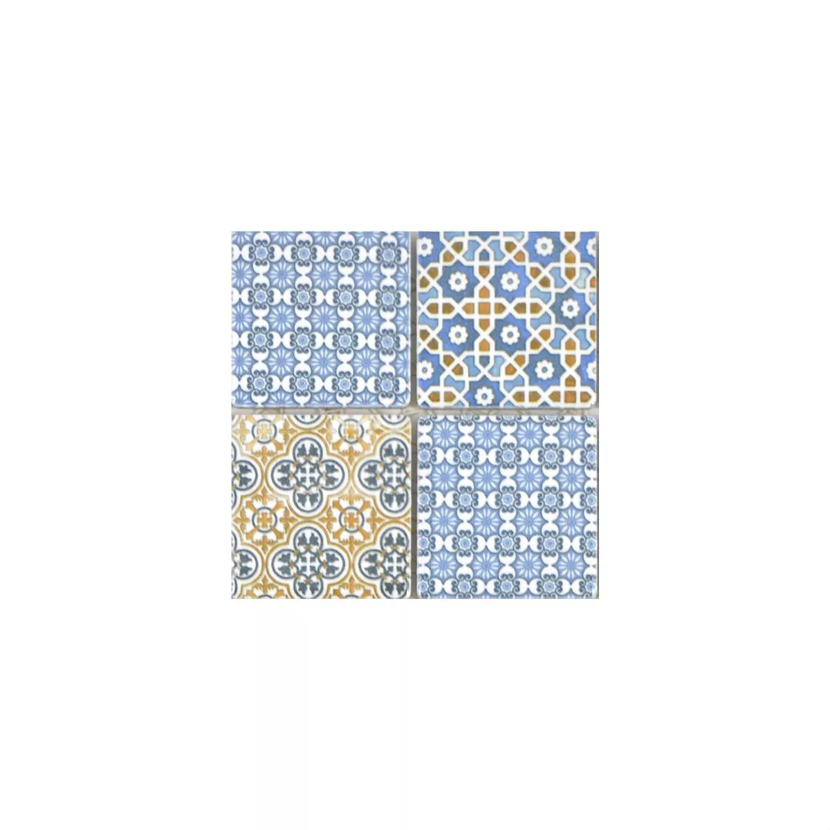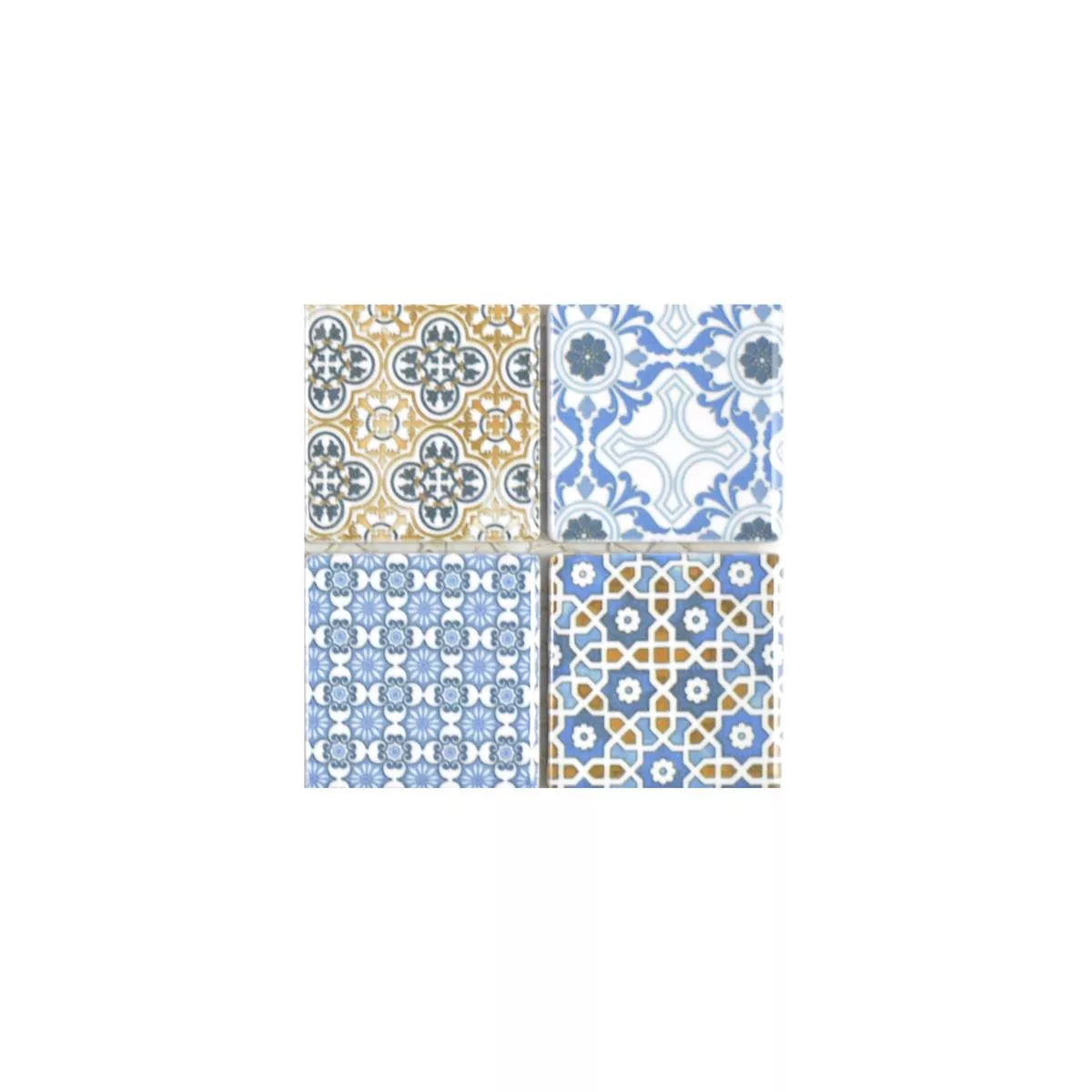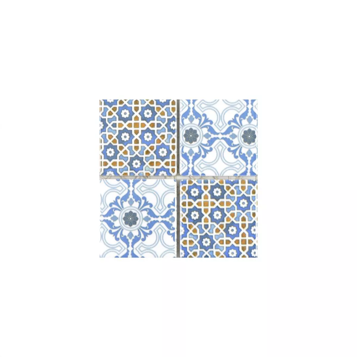 Échantillon Céramique Mosaïque Carrelage Daymion Optique Rétro Carré Bleu Brun