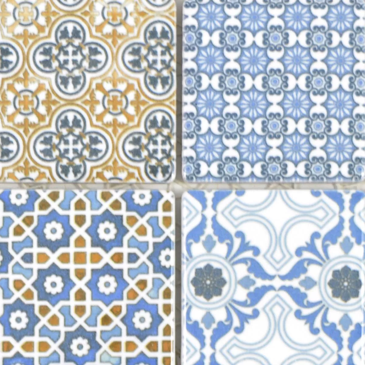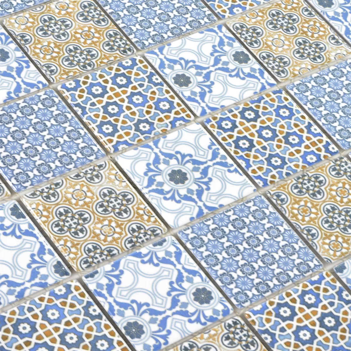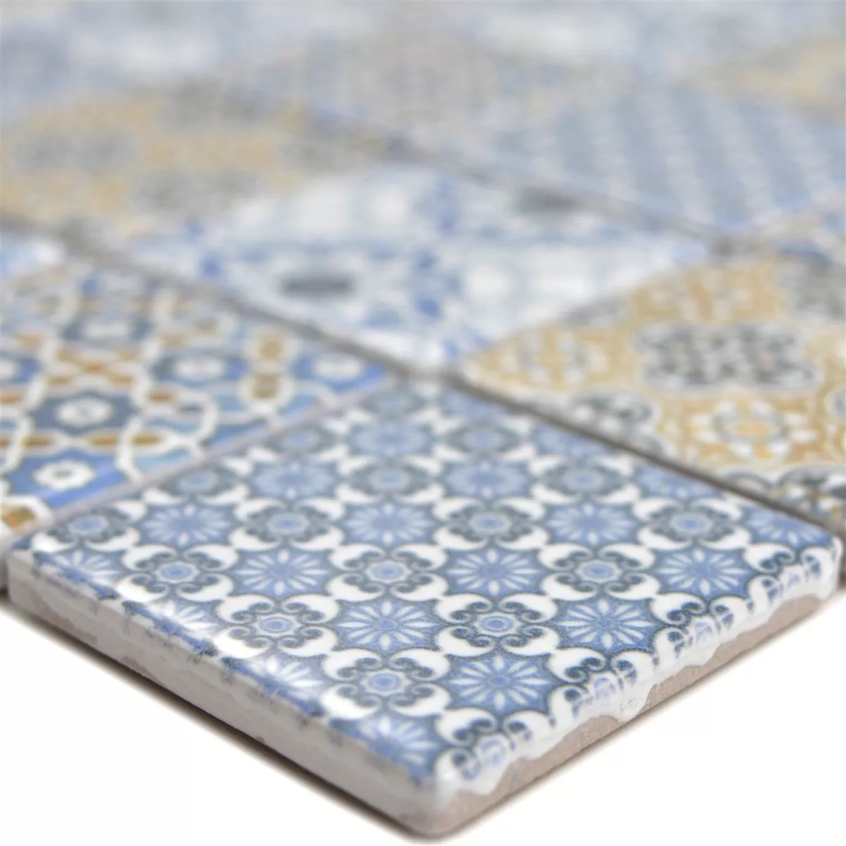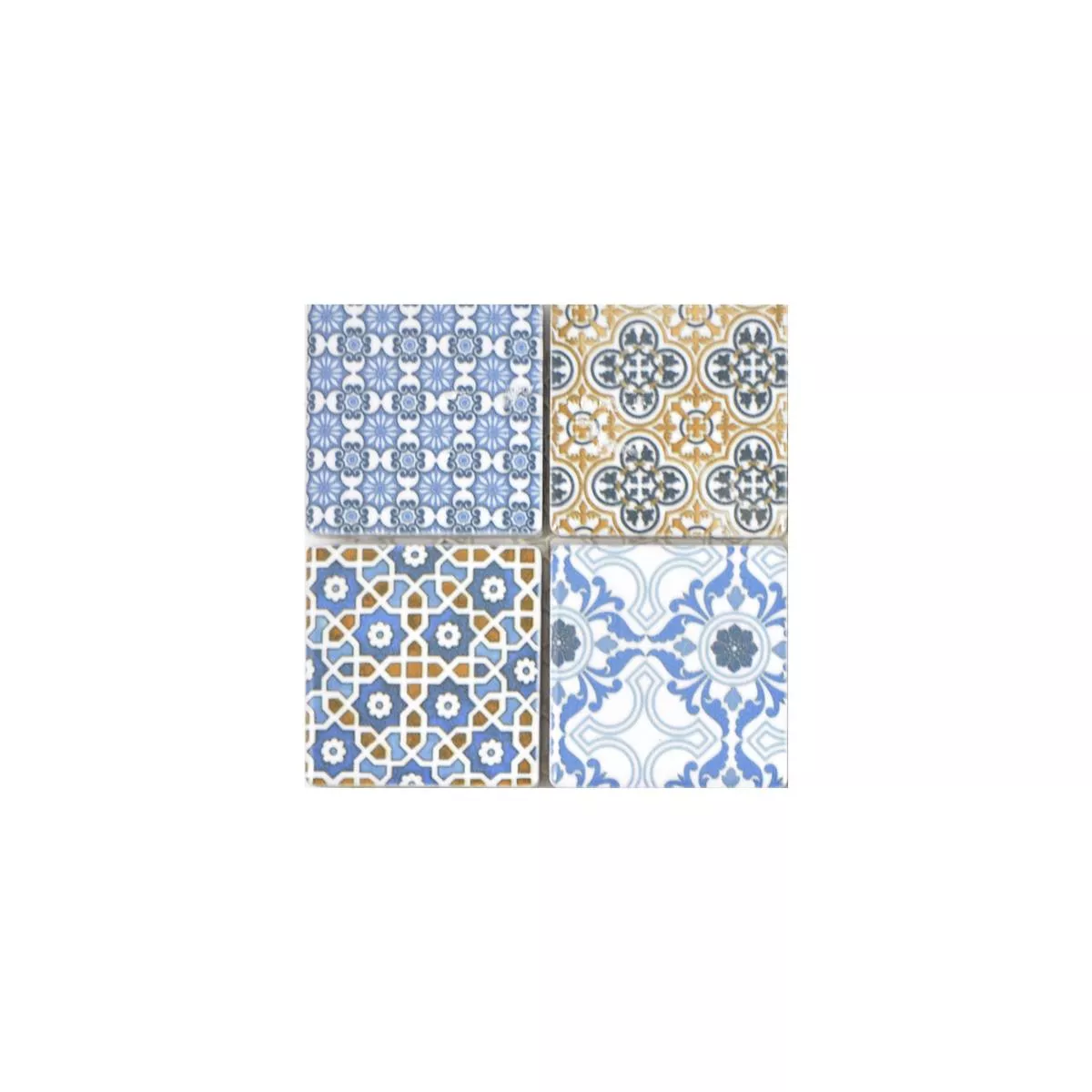 Échantillon Céramique Mosaïque Carrelage Daymion Optique Rétro Carré Bleu Brun