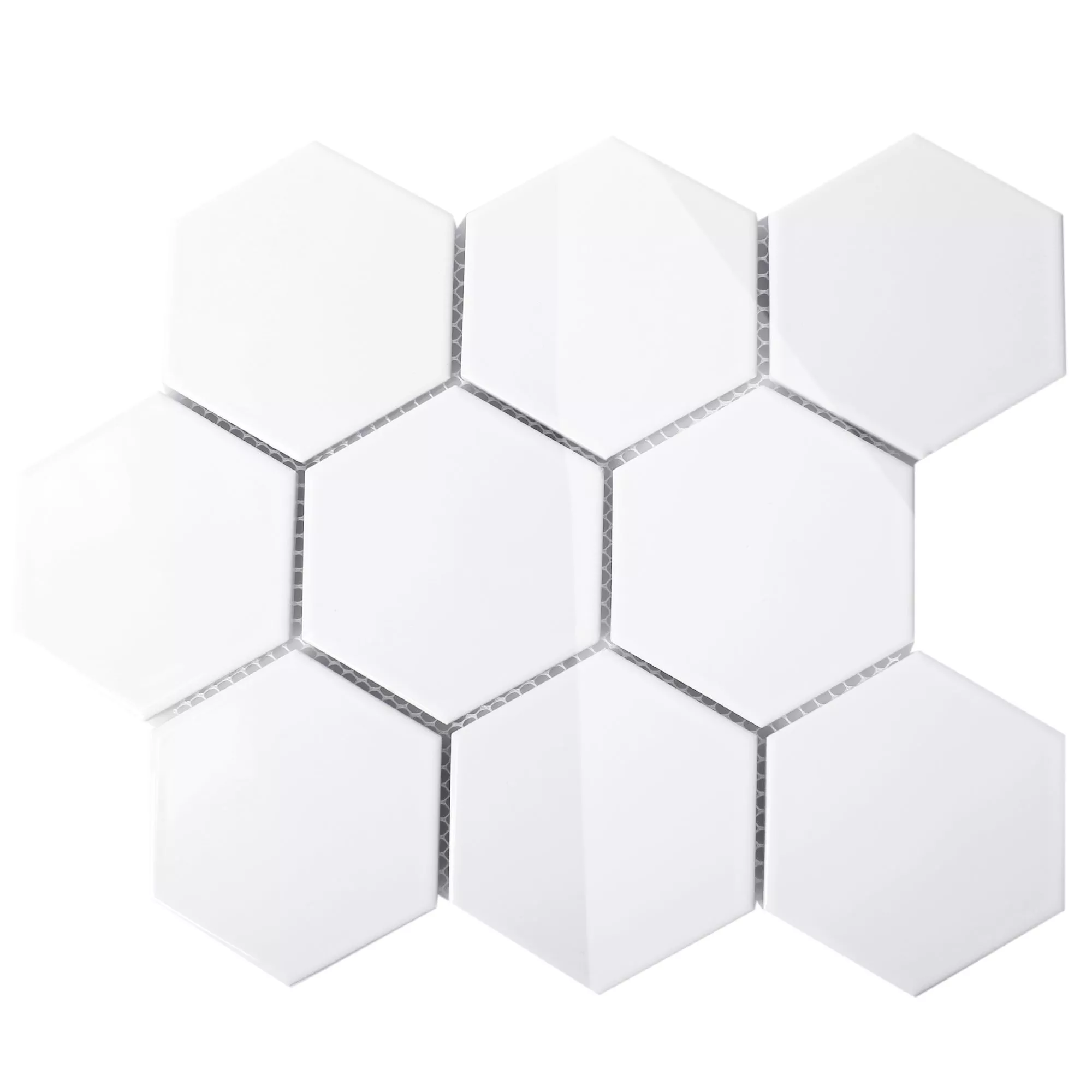 Échantillon Céramique Mosaïque Carrelage Hexagone Salamanca Blanc Brillant H95