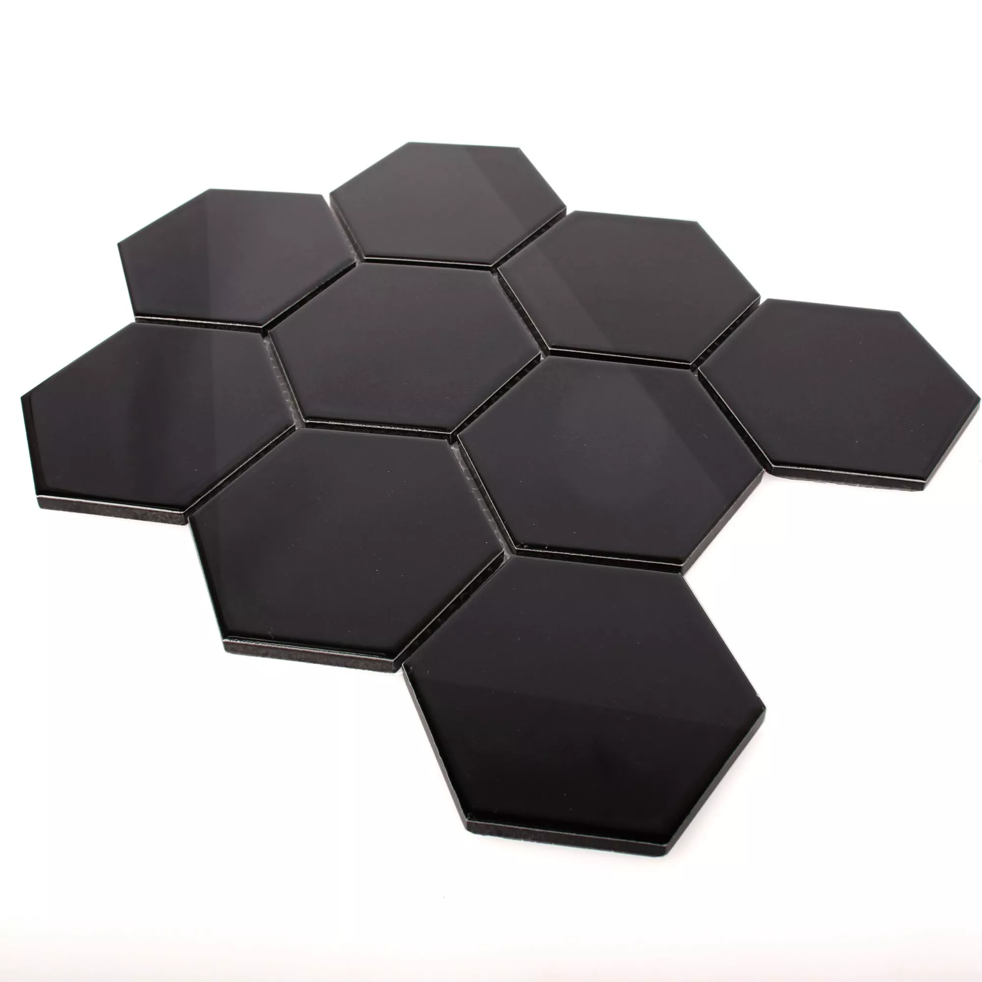Échantillon Céramique Mosaïque Carrelage Hexagone Salamanca Noir Brillant H95