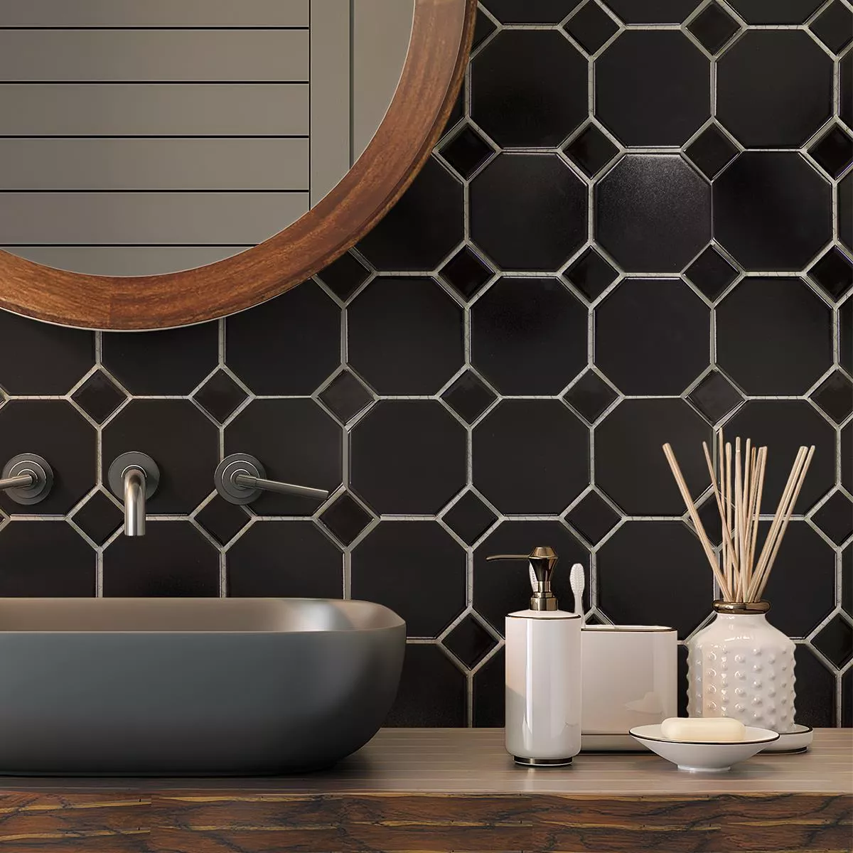 Échantillon Céramique Mosaïque Carrelage Octogone Fürstenberg Noir