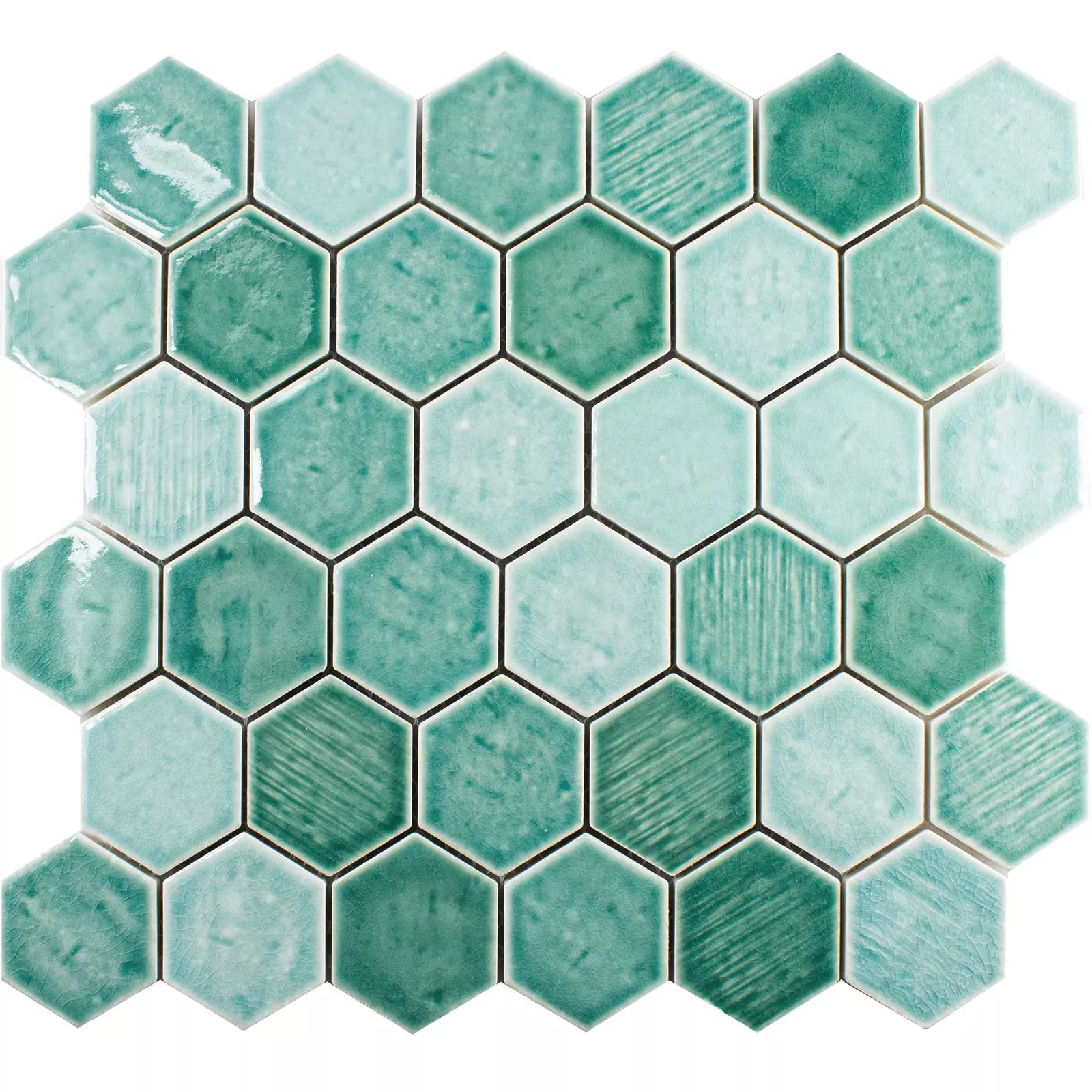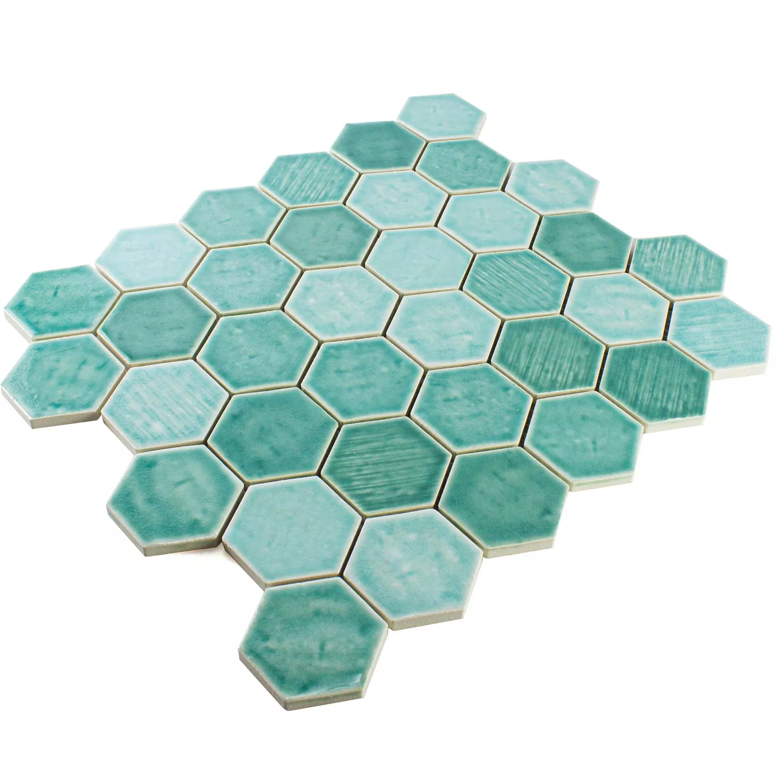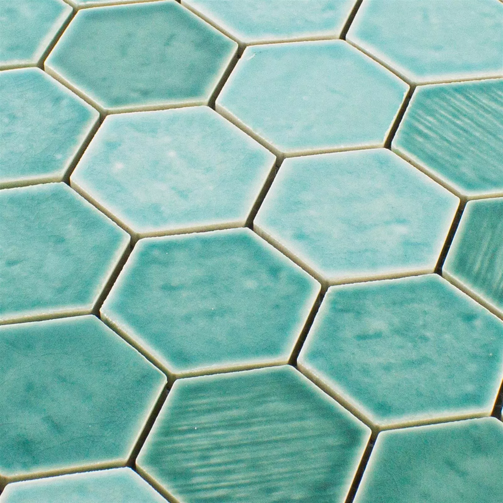 Échantillon Céramique Mosaïque Carrelage Roseburg Hexagone Brillant Turquoise