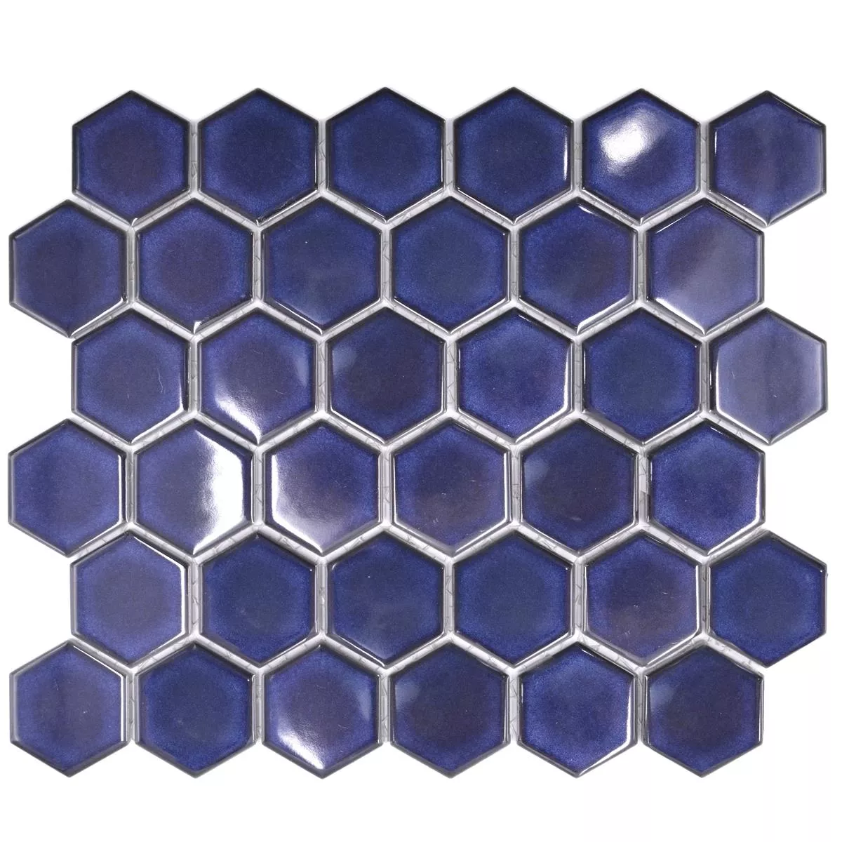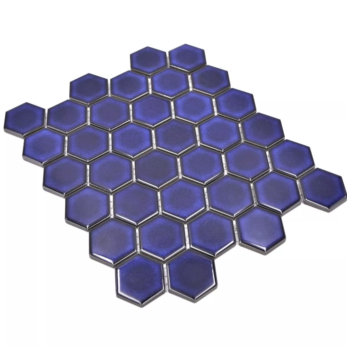 Échantillon de Céramique Mosaïque Salomon Hexagone Cobalt Bleu H51