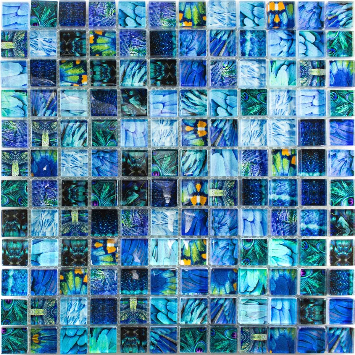 Échantillon de Mosaïque En Verre Carrelage Peafowl Bleu 23