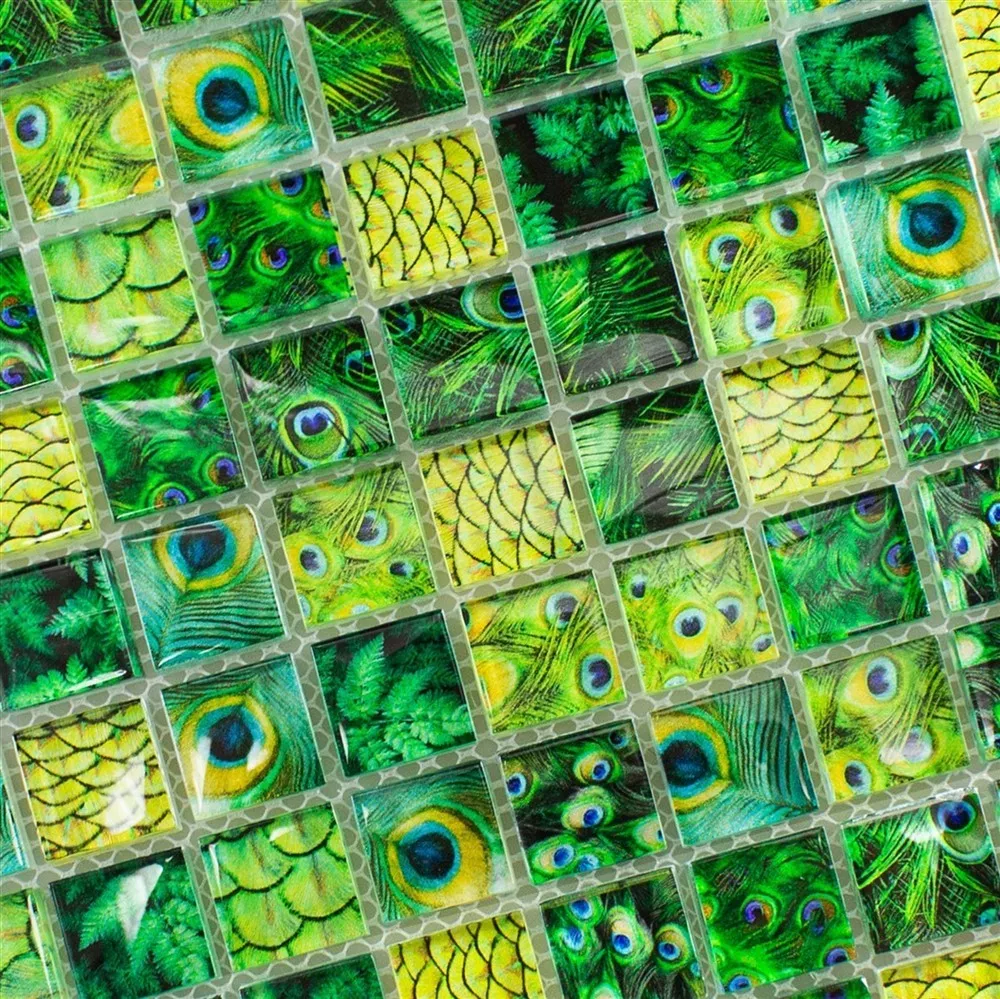 Échantillon de Mosaïque En Verre Carrelage Peafowl Vert 23