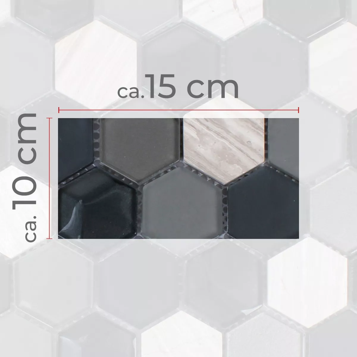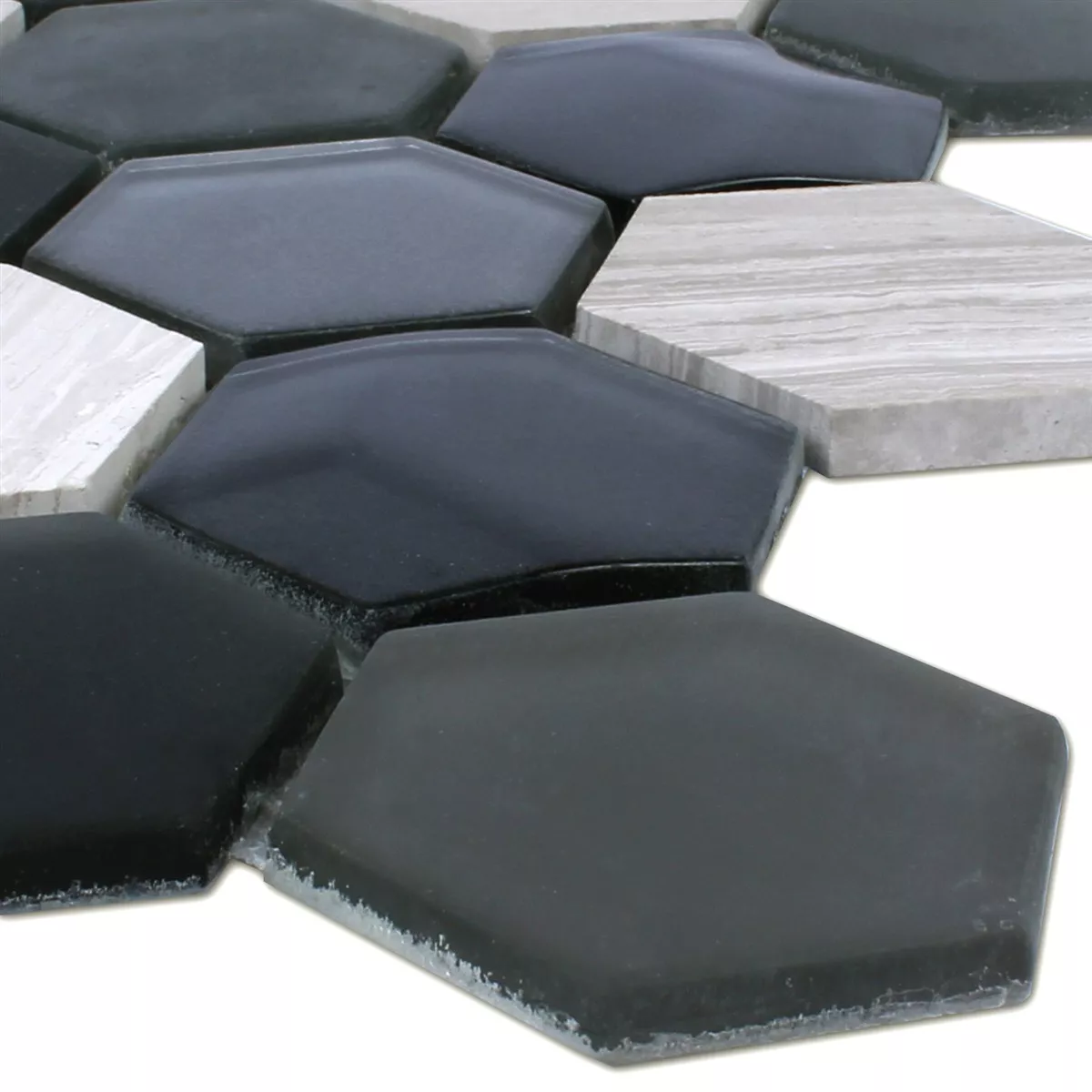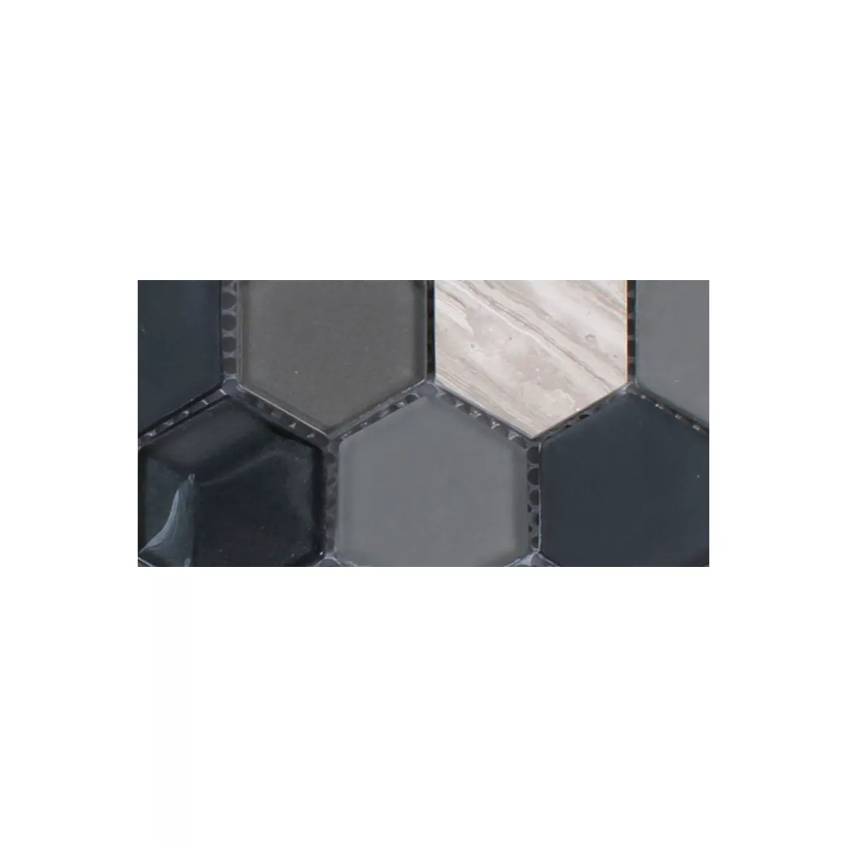 Échantillon Hexagone Verre Mosaïque Pierre Naturelle Noir Gris 3D