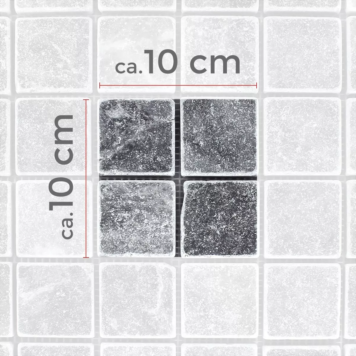 Chaque carreau et chaque mosaïque ont des exigences différentes pour la coupe, la pose et le traitement en raison des caractéristiques individuelles des matériaux et des conditions d'utilisation. Veuillez demander à un expert local une pose correcte et sûre de vos mosaïques ou carreaux. Nous ne sommes pas responsables de l'utilisation non professionnelle et de la fabrication défectueuse des matériaux de construction.