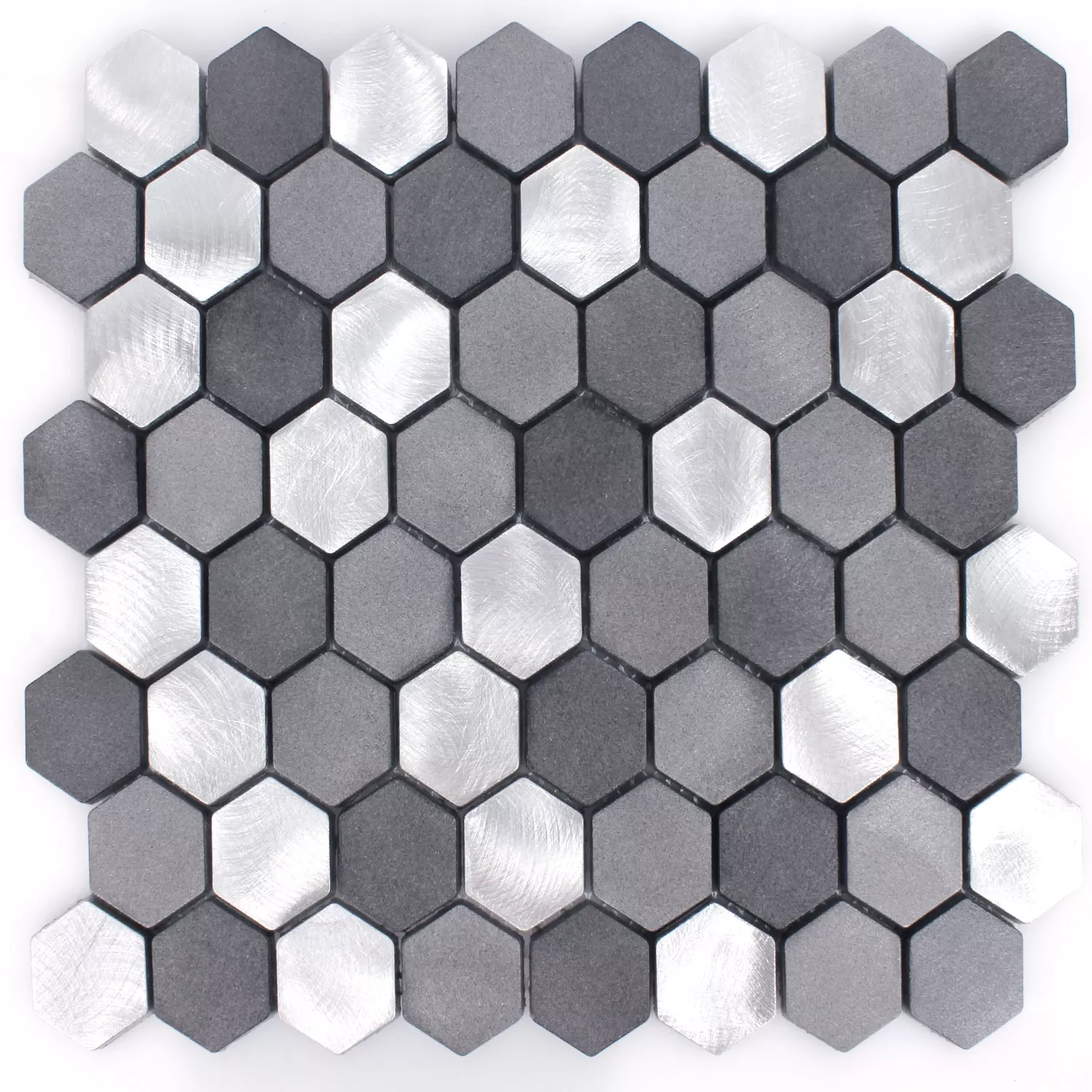 Échantillon Mosaïque Aluminium Apache Hexagone Noir Argent
