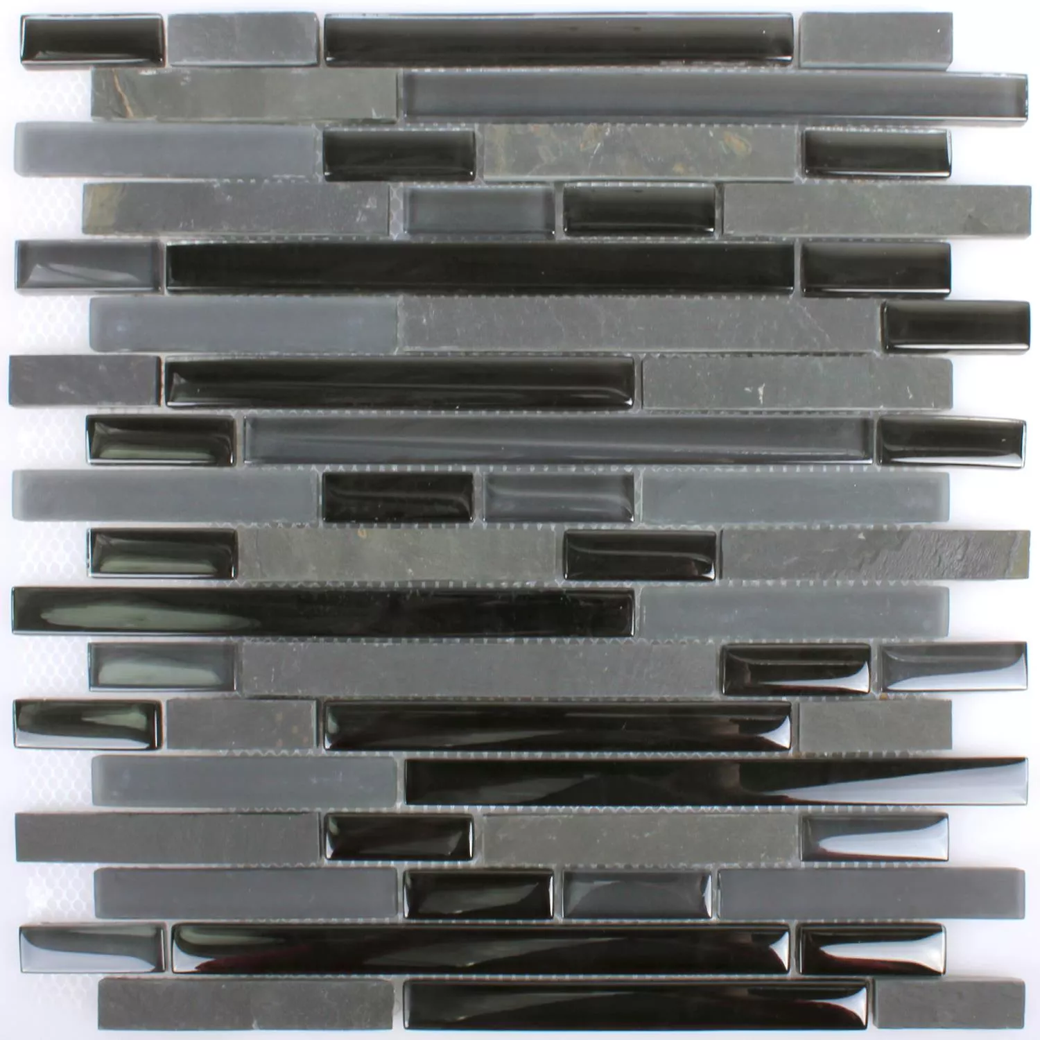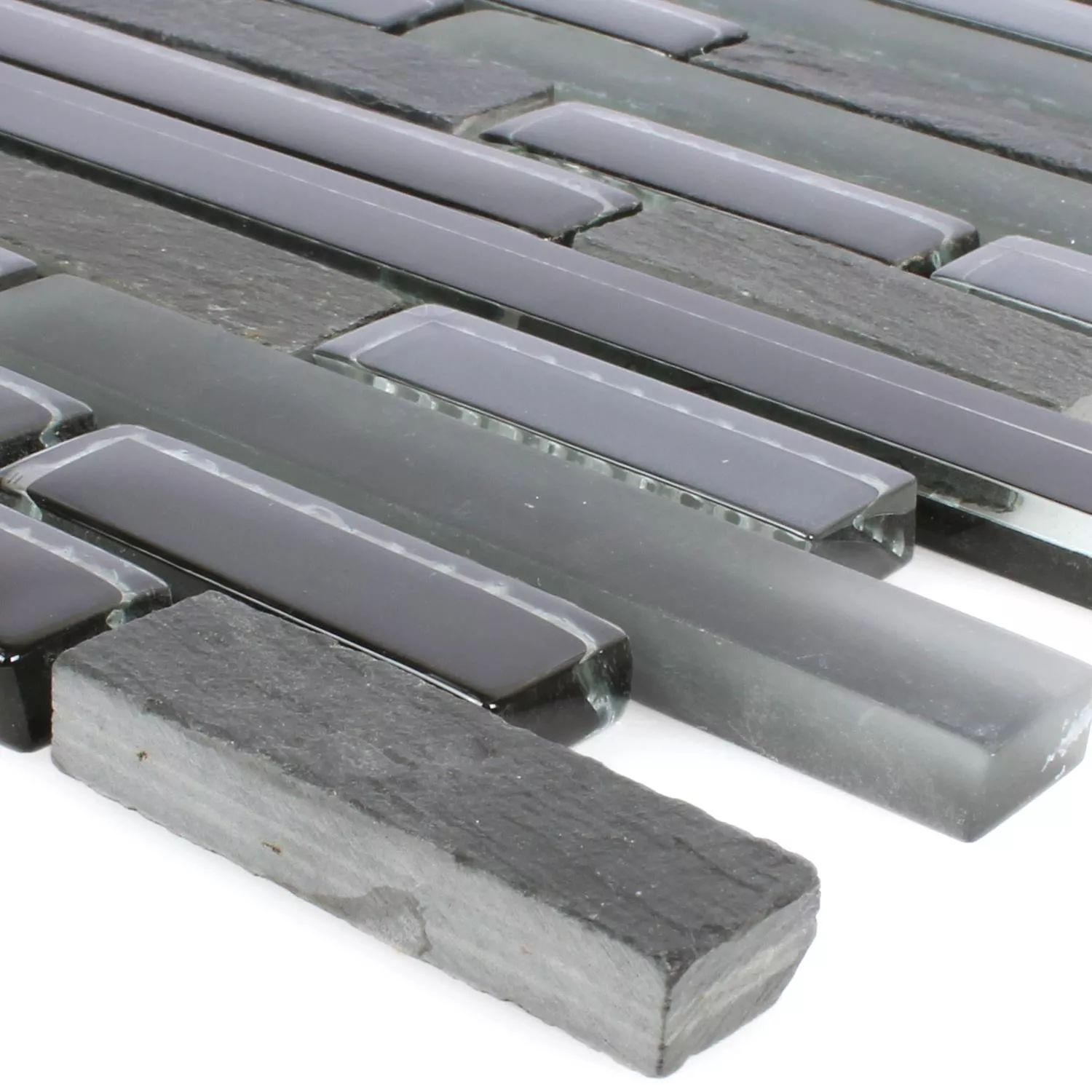 Échantillon Mosaïque Carrelage Apollo Pierre Naturelle Verremix Noir Brick