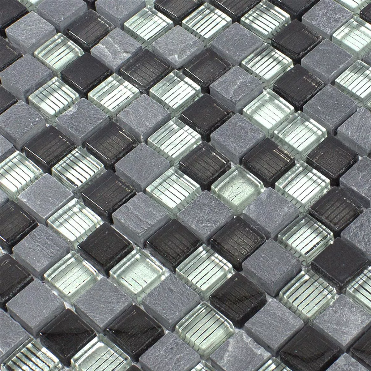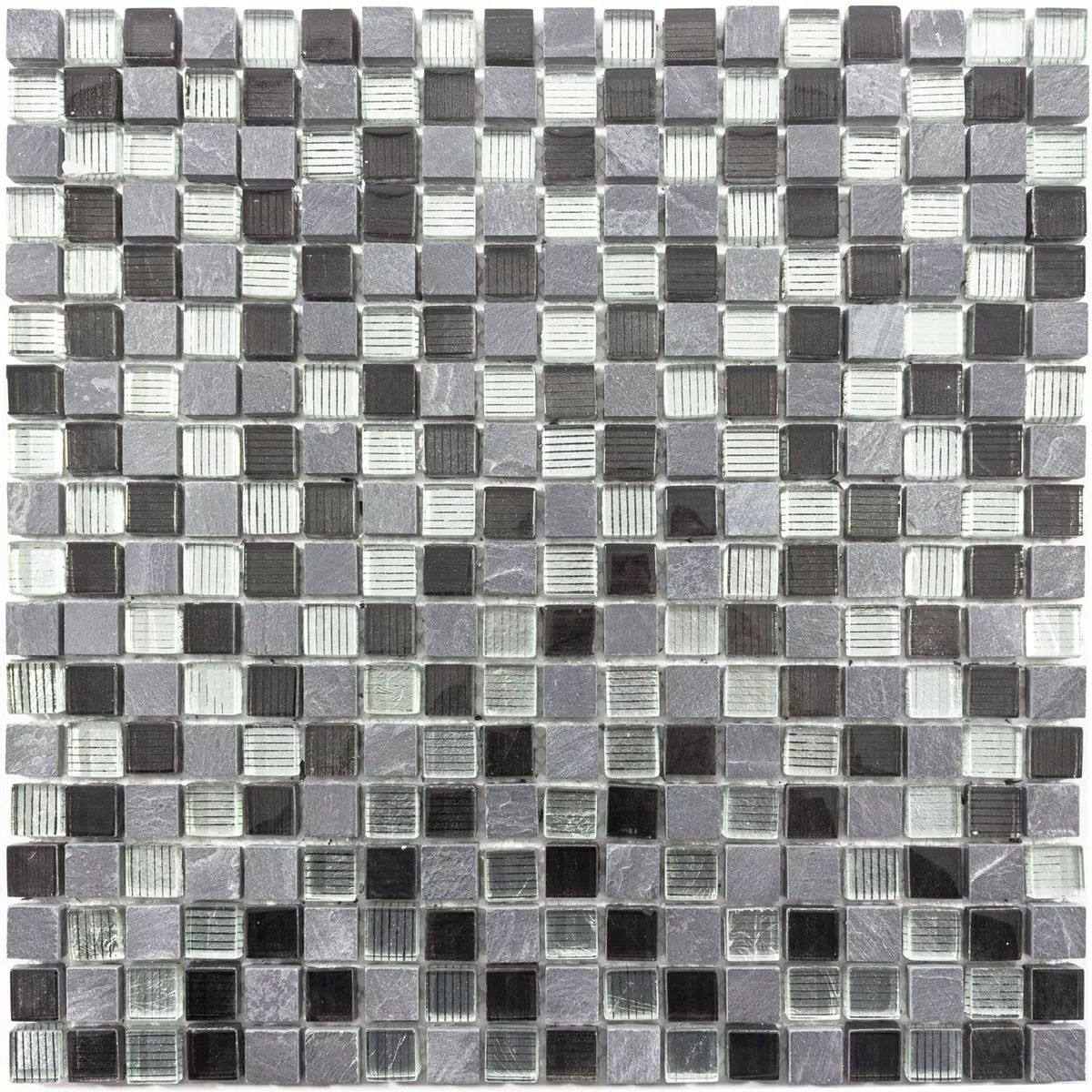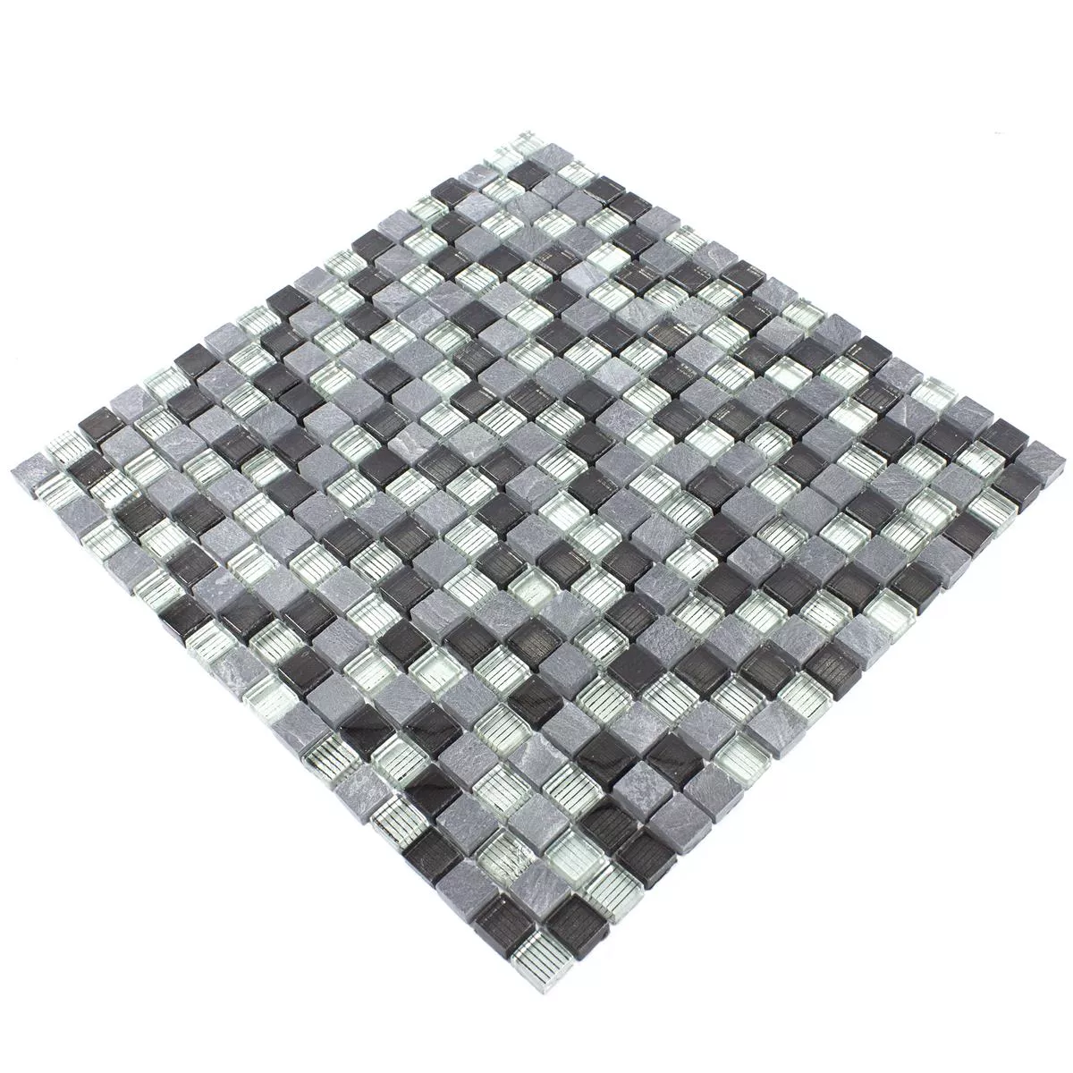 Échantillon Mosaïque Carrelage Verre Pierre Naturelle Lincoln Gris Argent