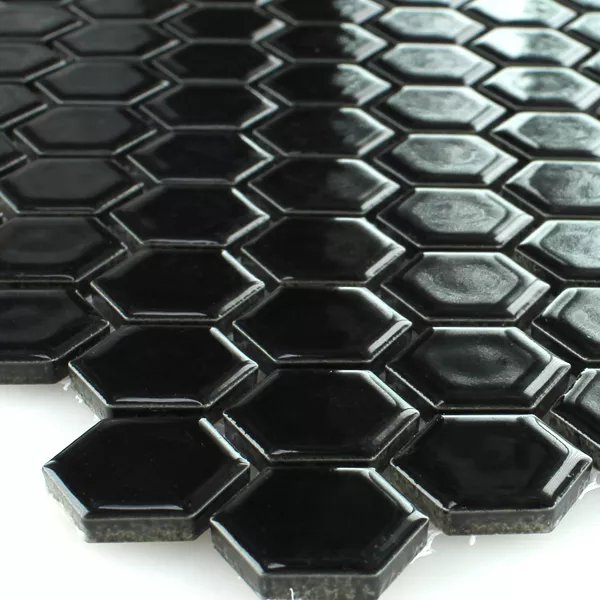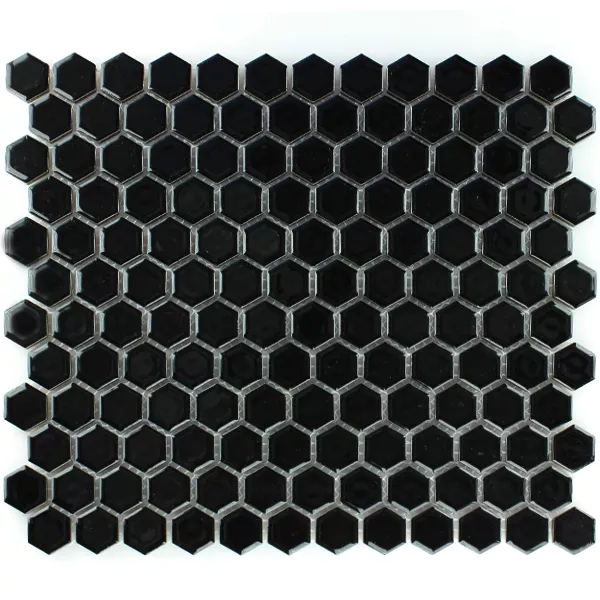 Échantillon Mosaïque Céramique Hexagon Noir Brillant H23