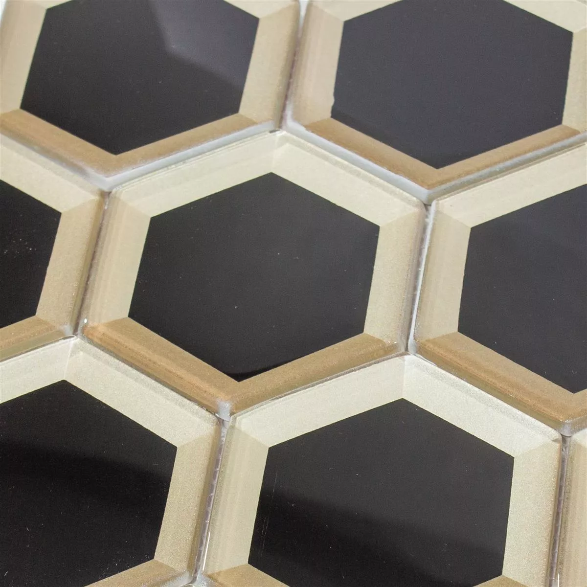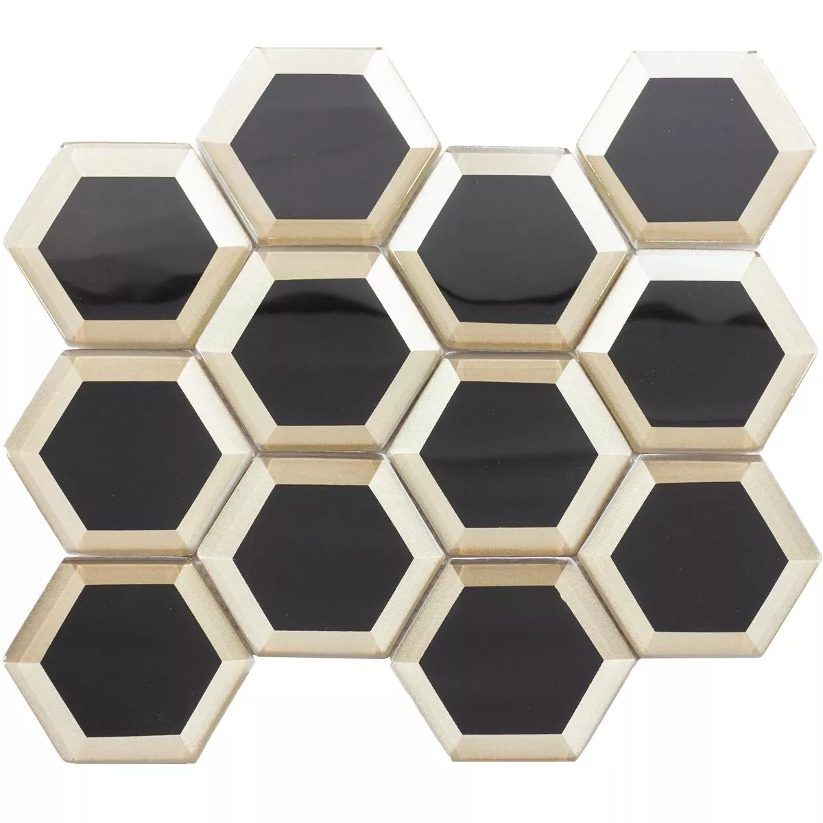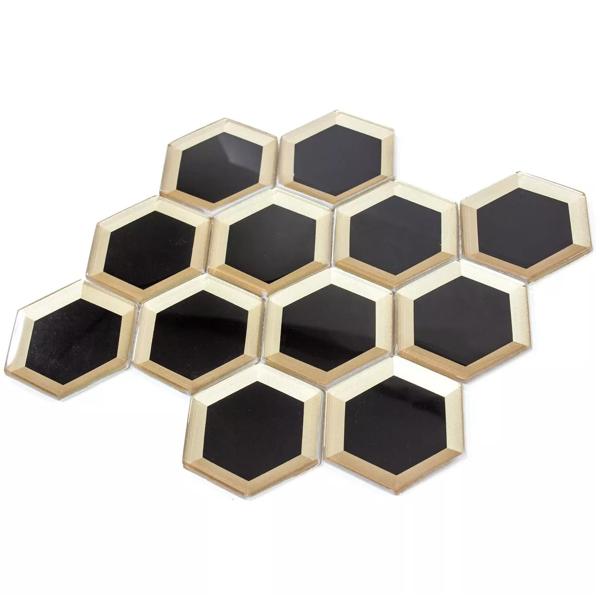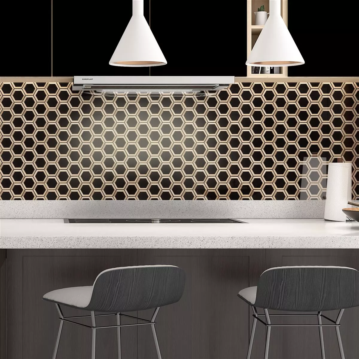 Échantillon Mosaïque En Verre Arnold Hexagone Noir Or