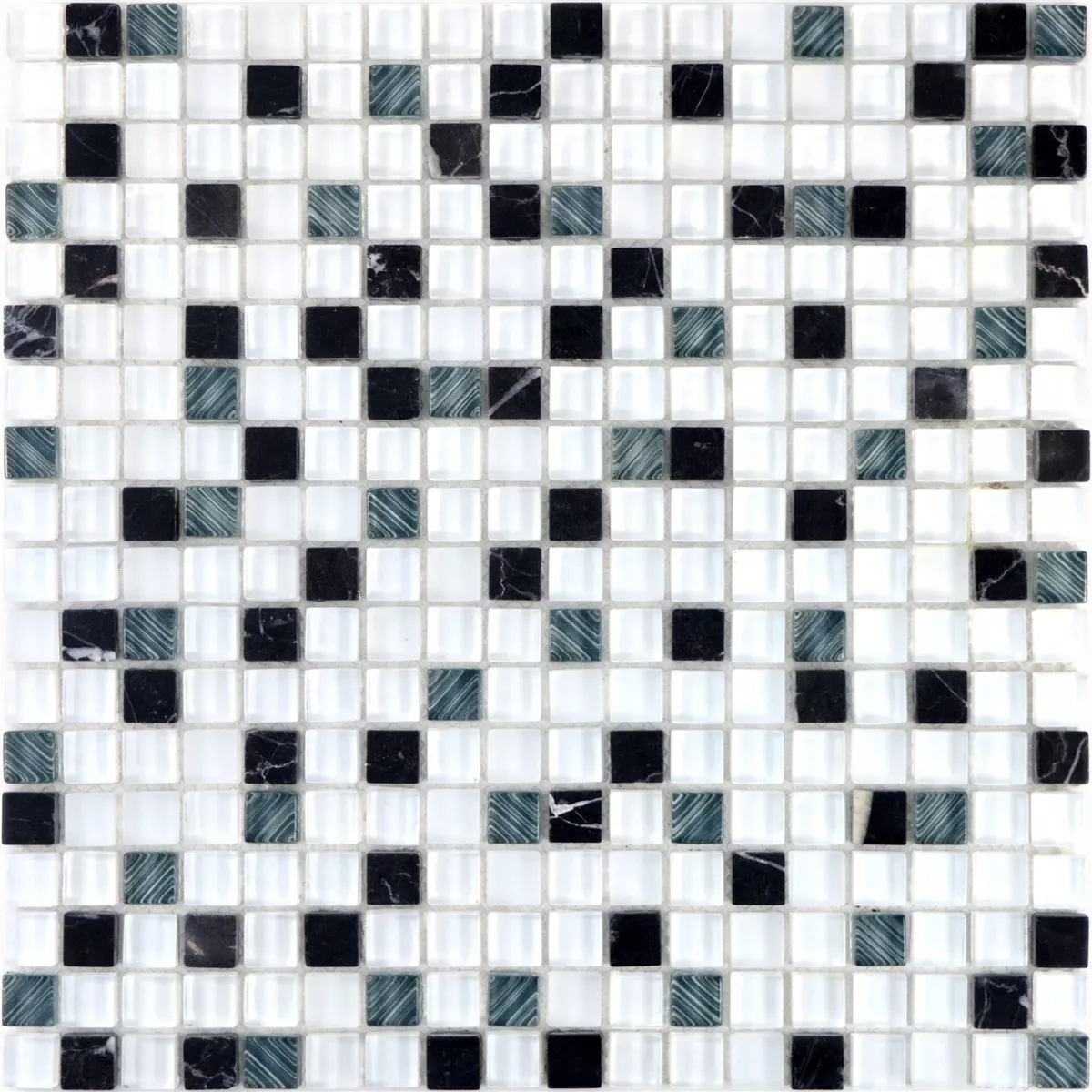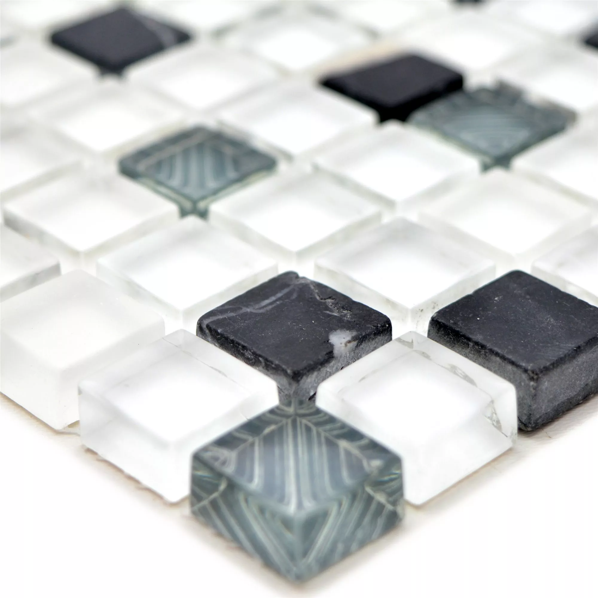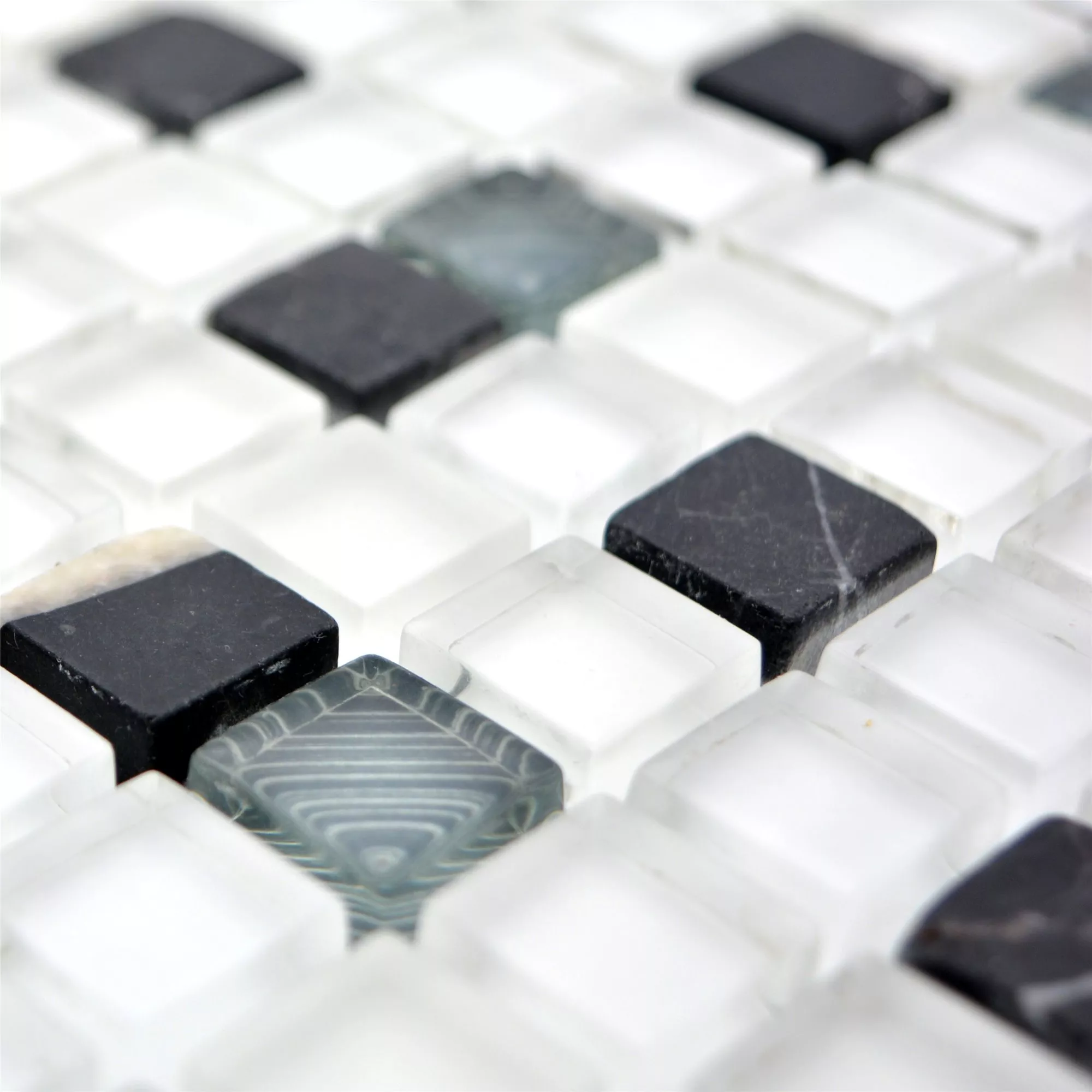 Échantillon Mosaïque En Verre Carreaux En Pierre Naturelle Nexus SuperBlanc Noir