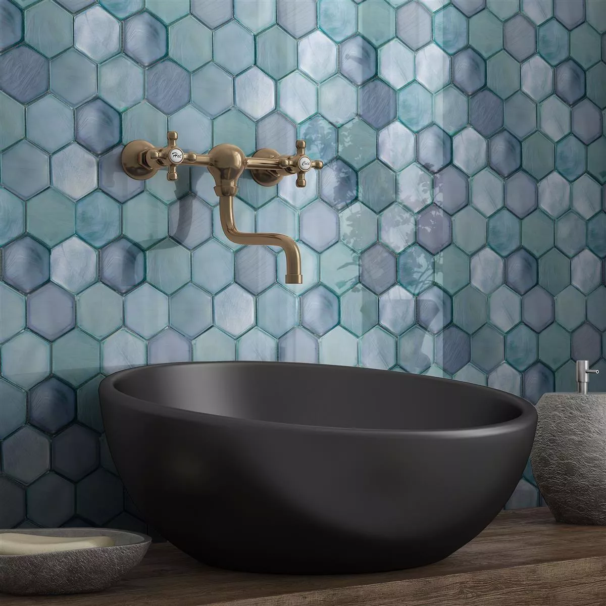 Échantillon Mosaïque En Verre Carrelage Andalucia Hexagone Lac Vert