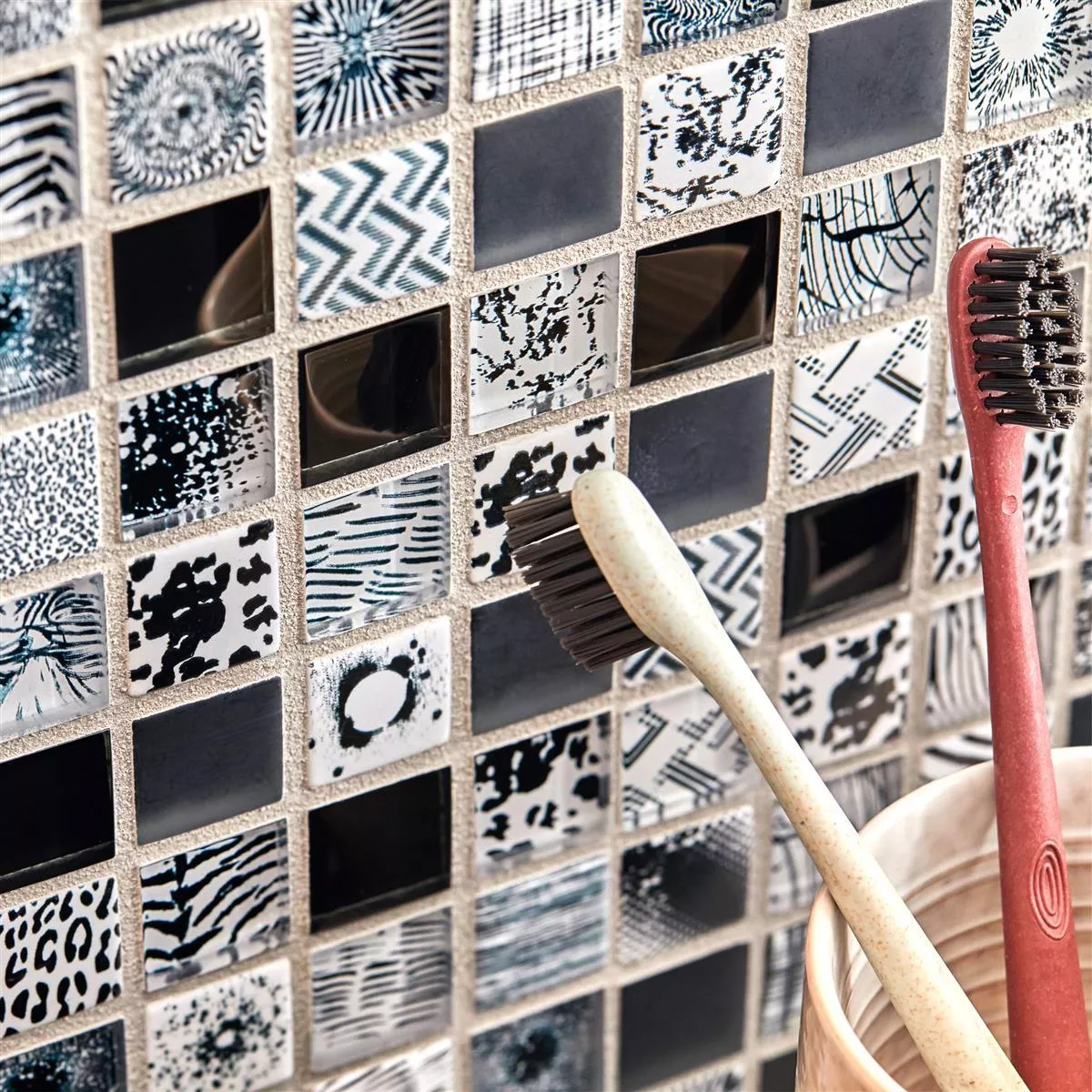 Échantillon Mosaïque En Verre Carrelage Cornelia Optique Rétro Noir