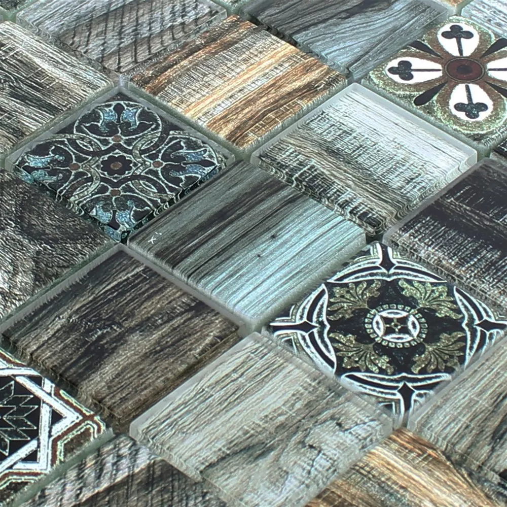 Échantillon Mosaïque En Verre Carrelage Imitation Bois Makarska Brun Vert