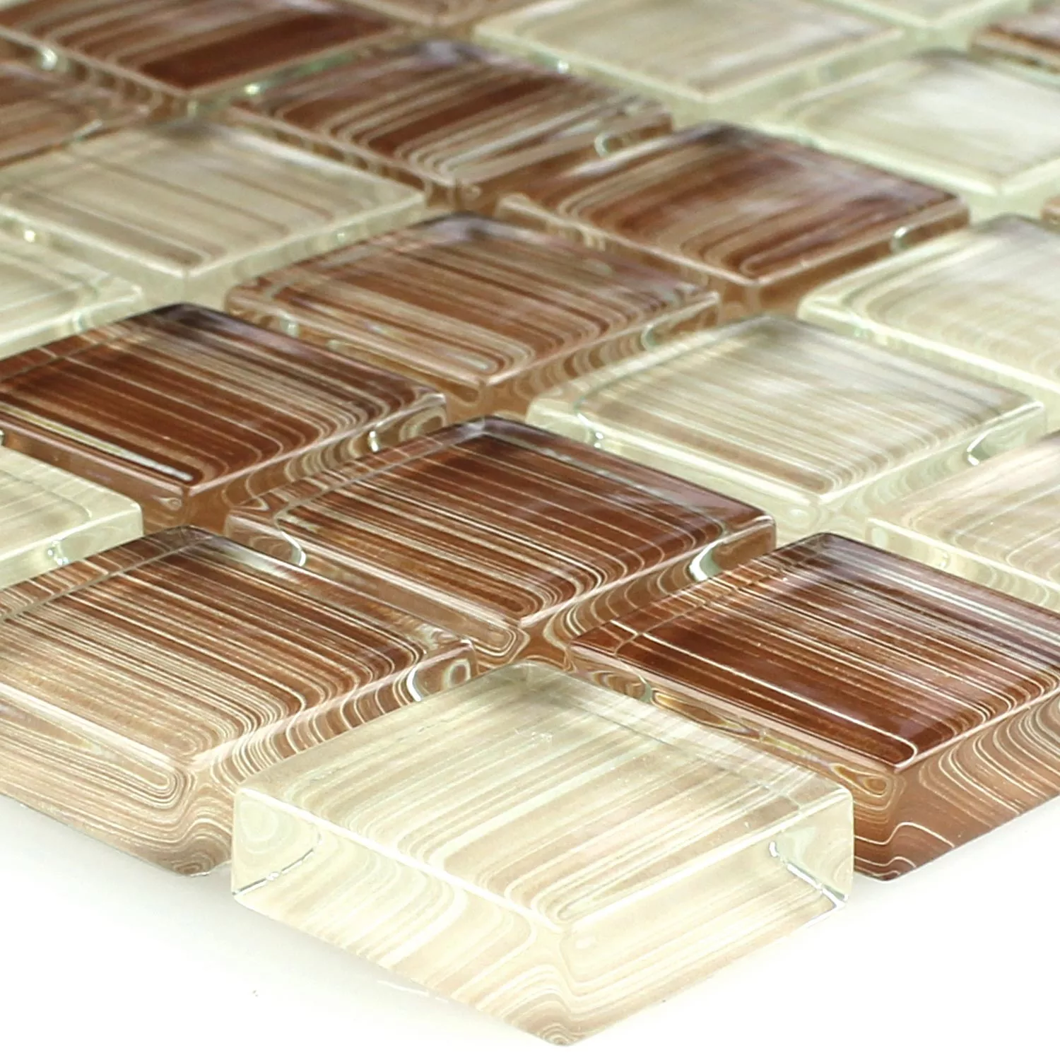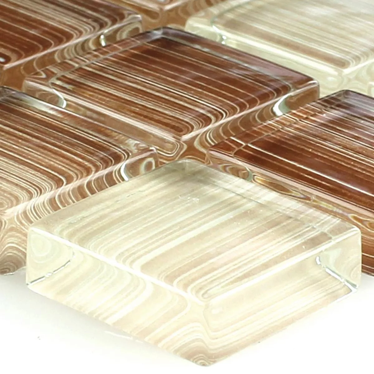 Échantillon Mosaïque En Verre Carrelage Lafayette Brun Beige Rayé 8mm