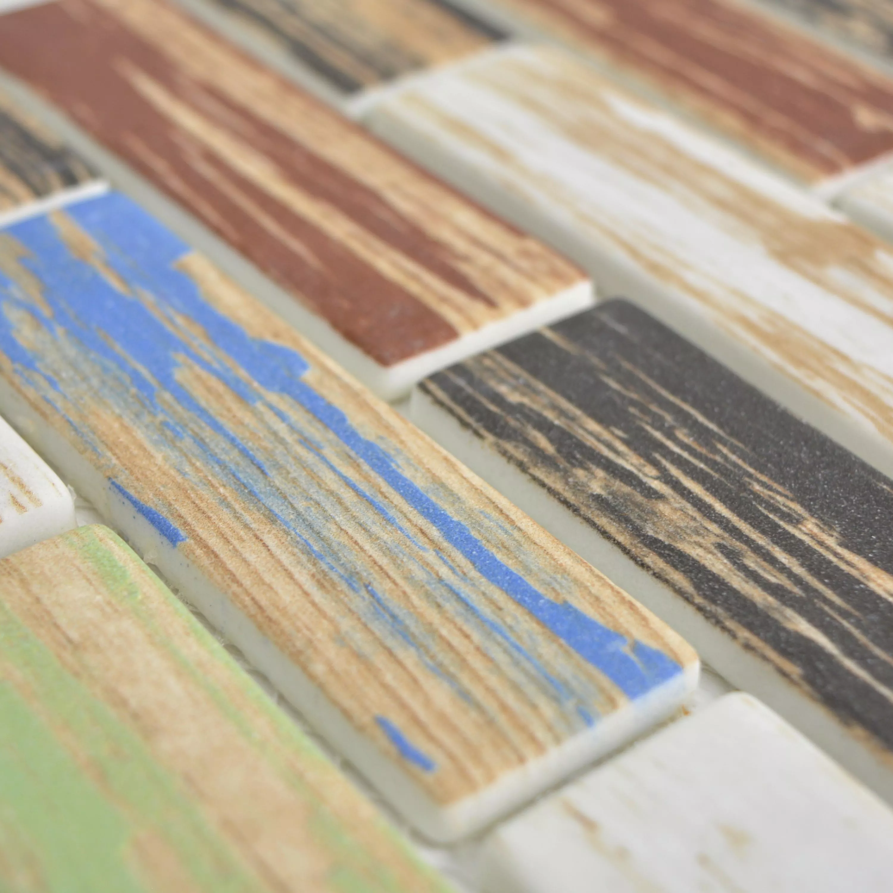 Échantillon Mosaïque En Verre Carrelage Lunatic Imitation Bois Coloré