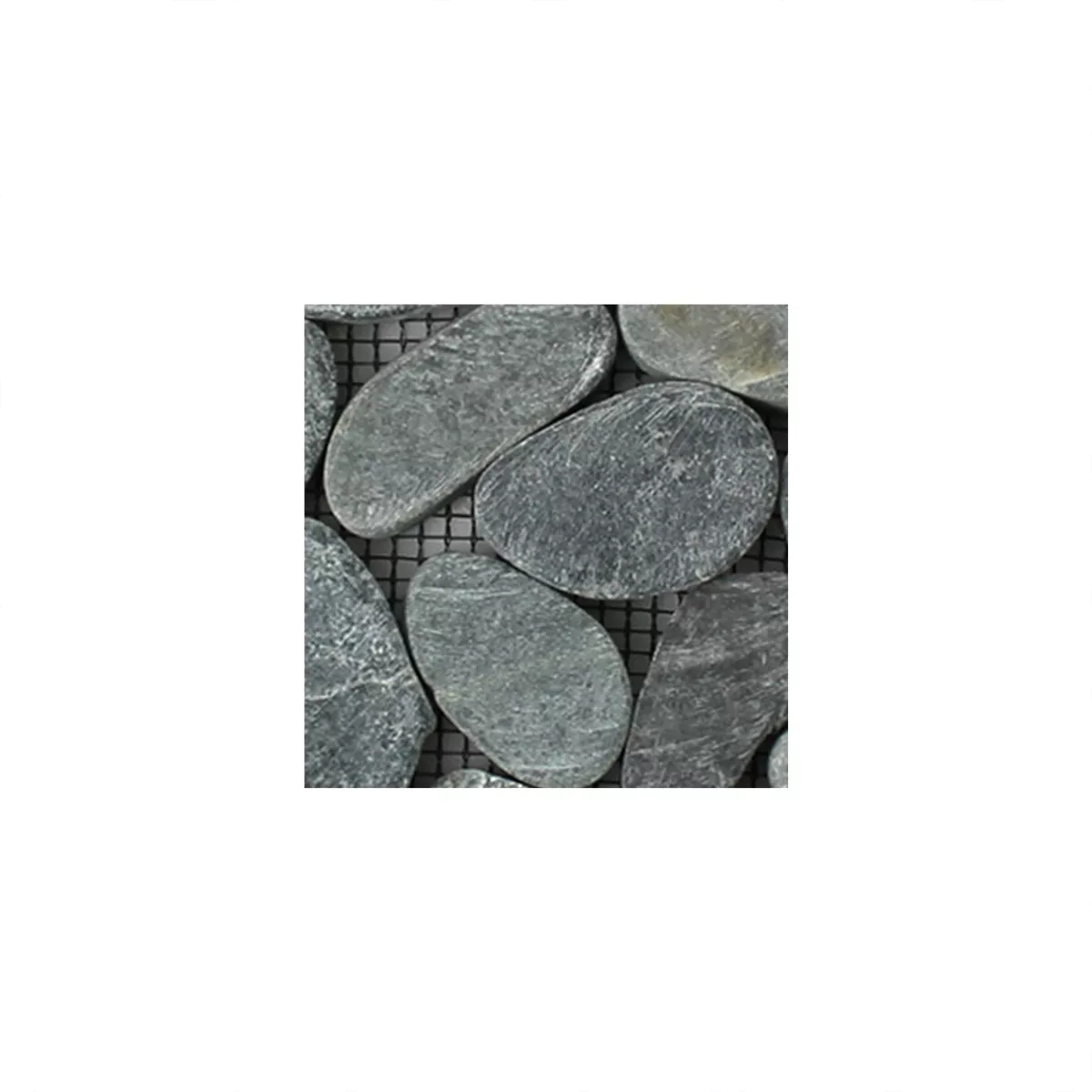 Échantillon Mosaïque Galets De Rivière En Tranche Noir