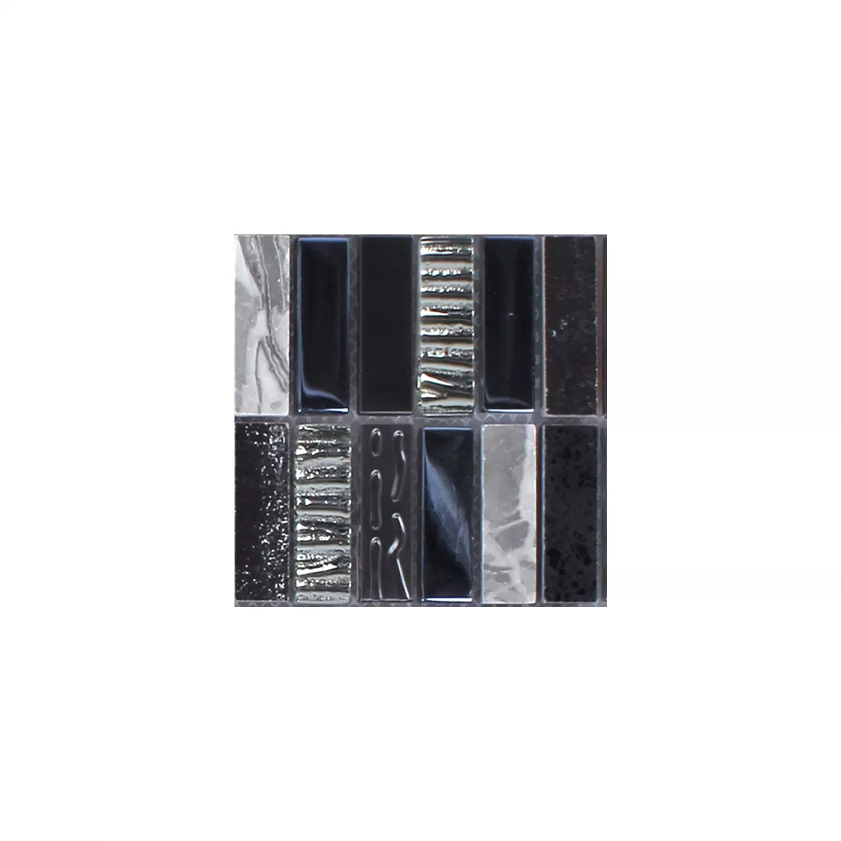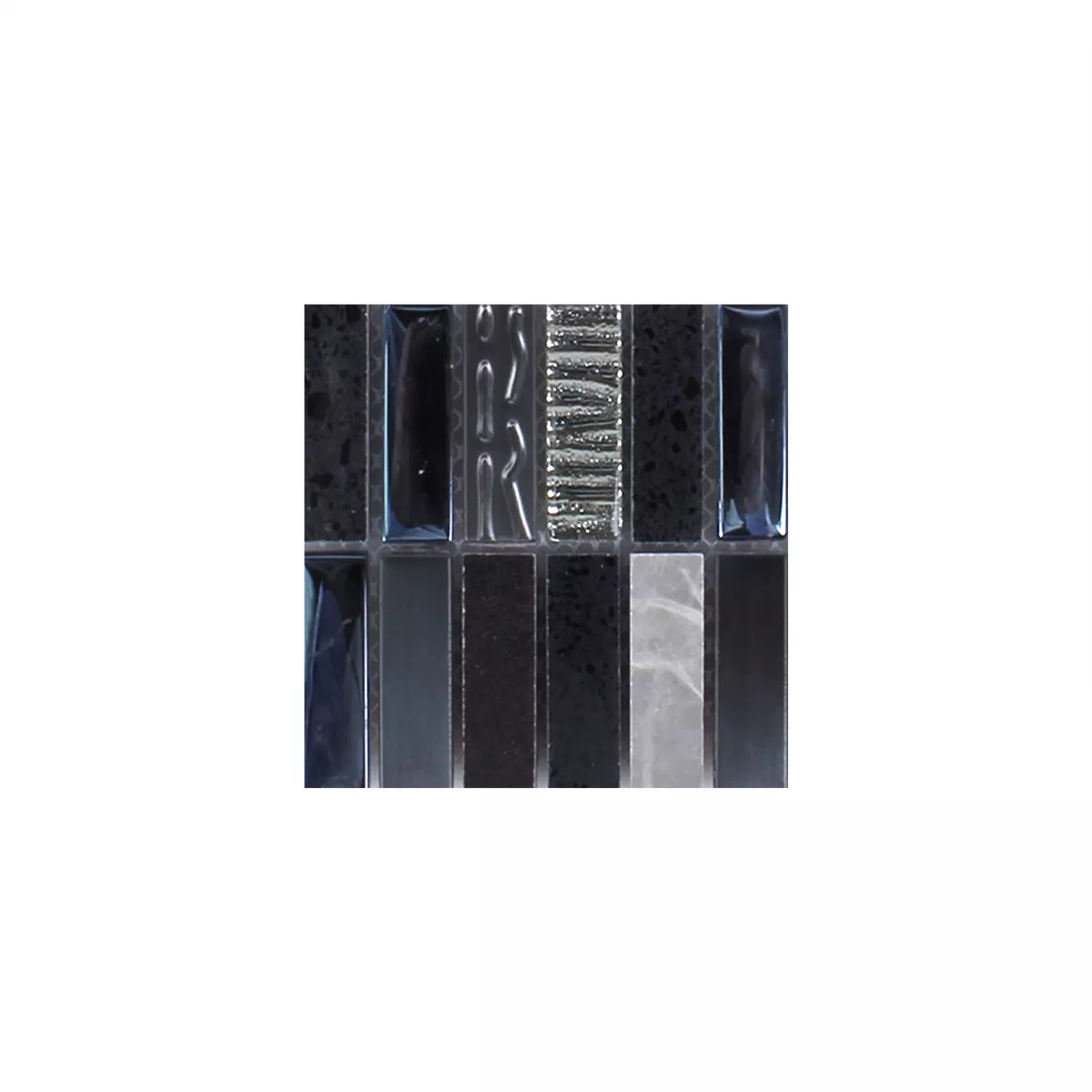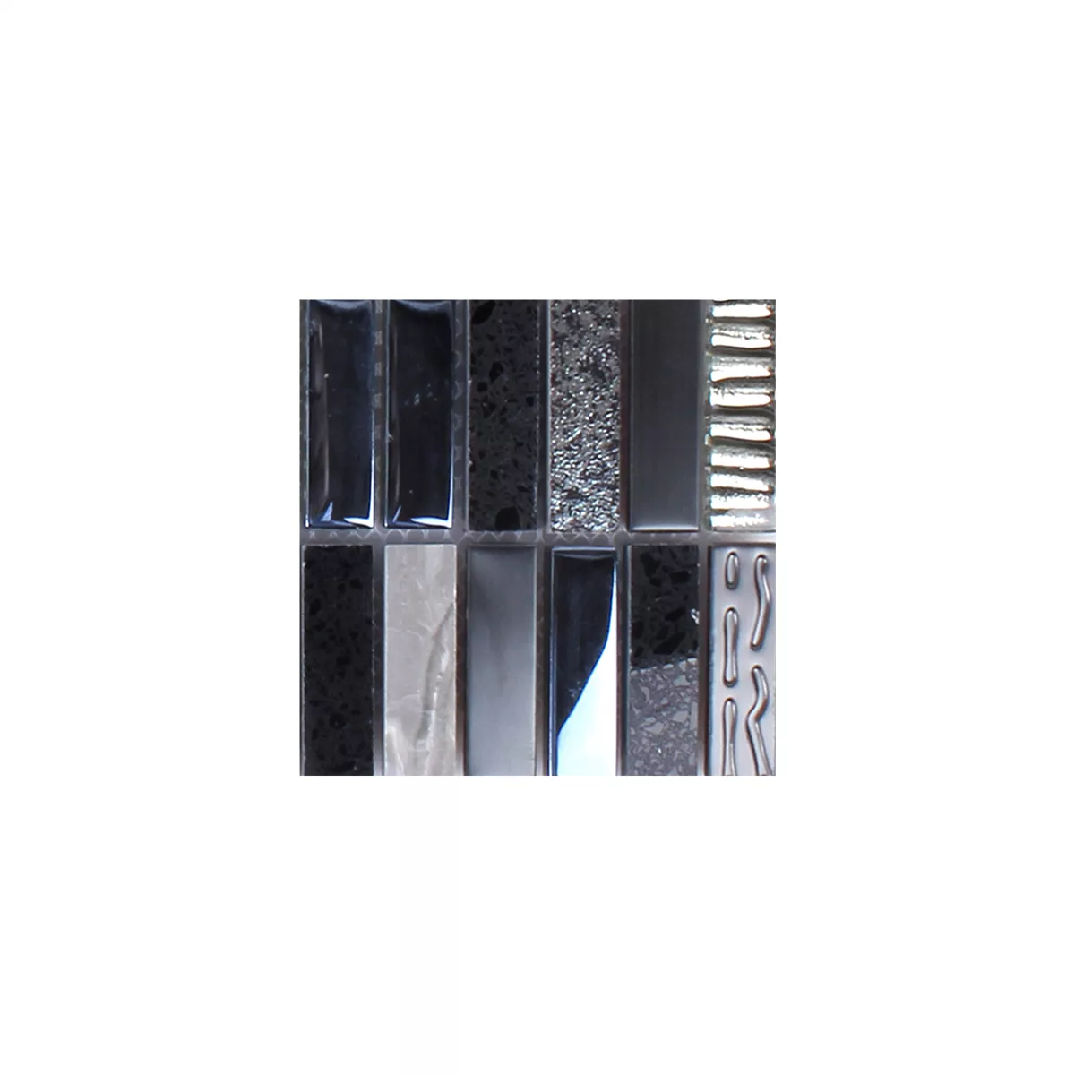 Échantillon Mosaïque Metal Verre Pierre Naturelle Noir Mix