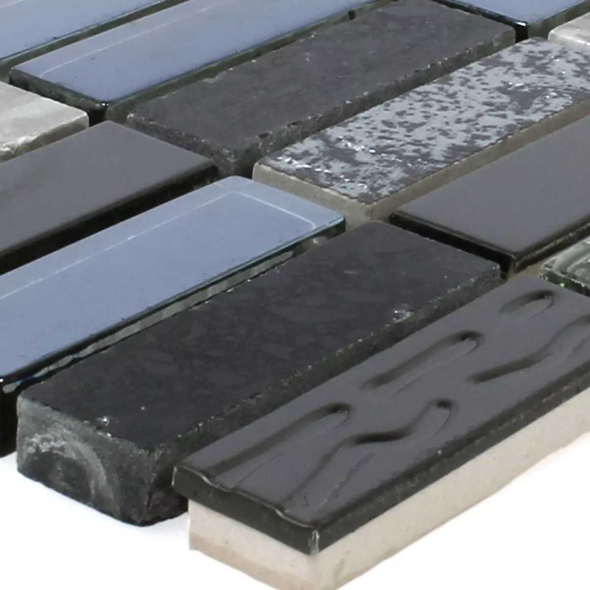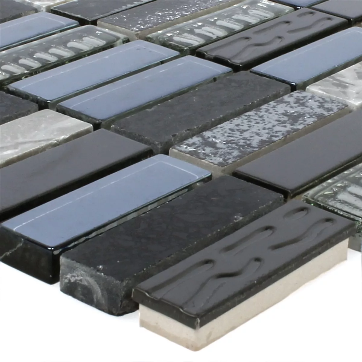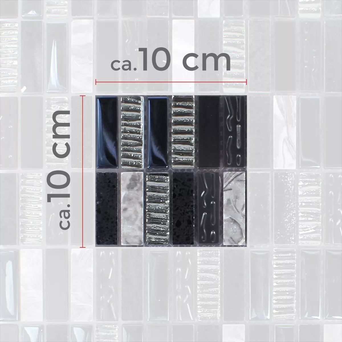 Échantillon Mosaïque Metal Verre Pierre Naturelle Noir Mix