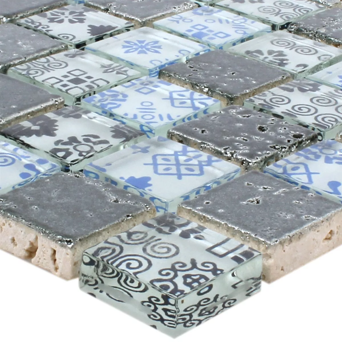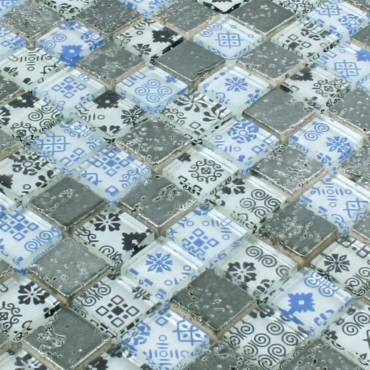 Échantillon Mosaïque Resin Verre Belmont Bleu Argent