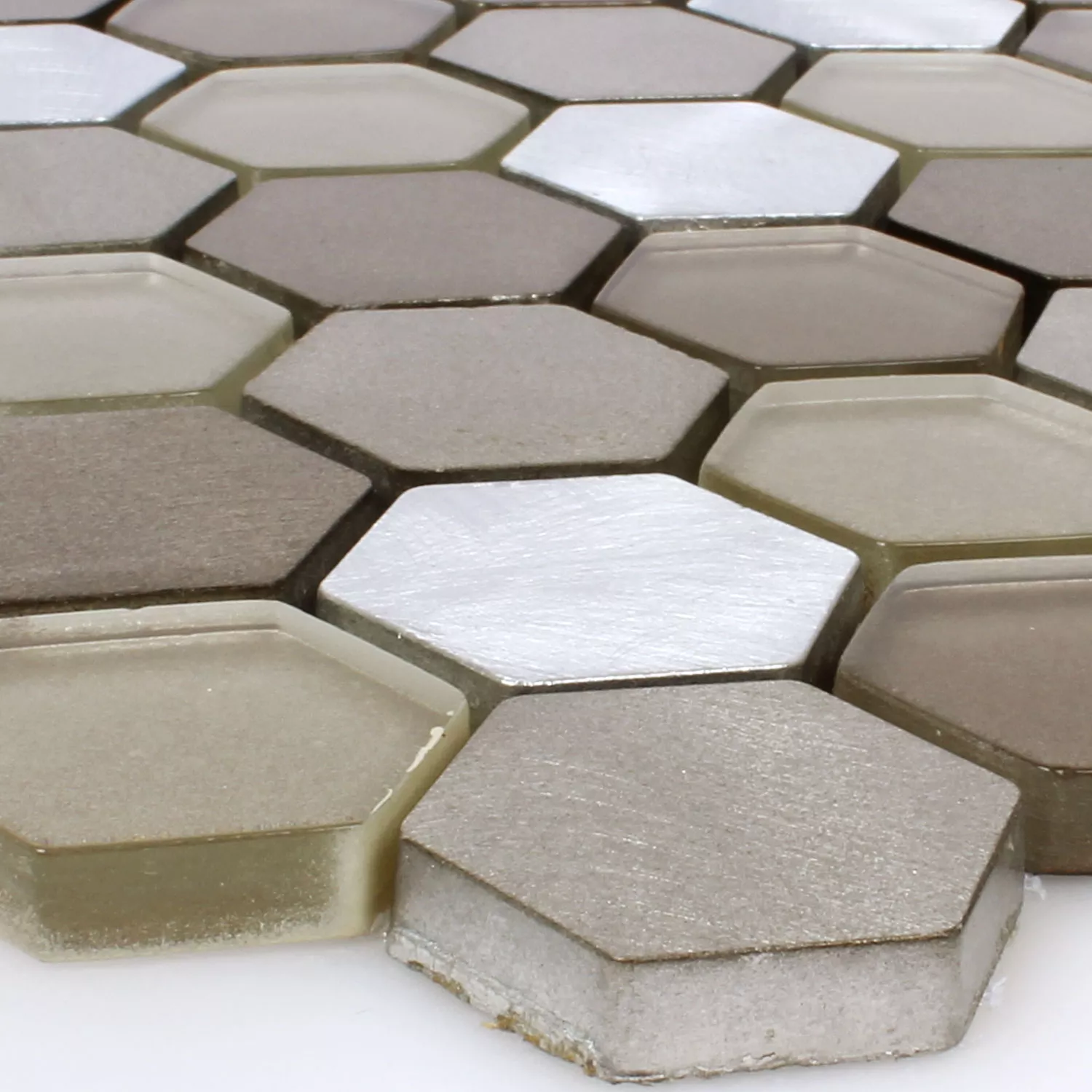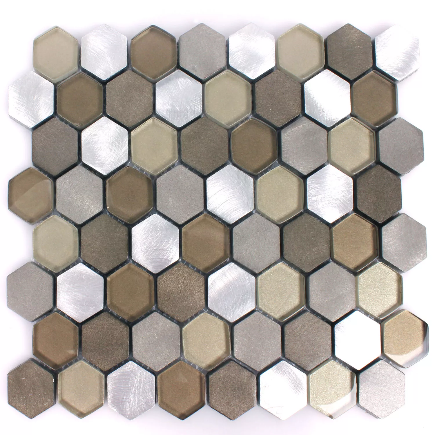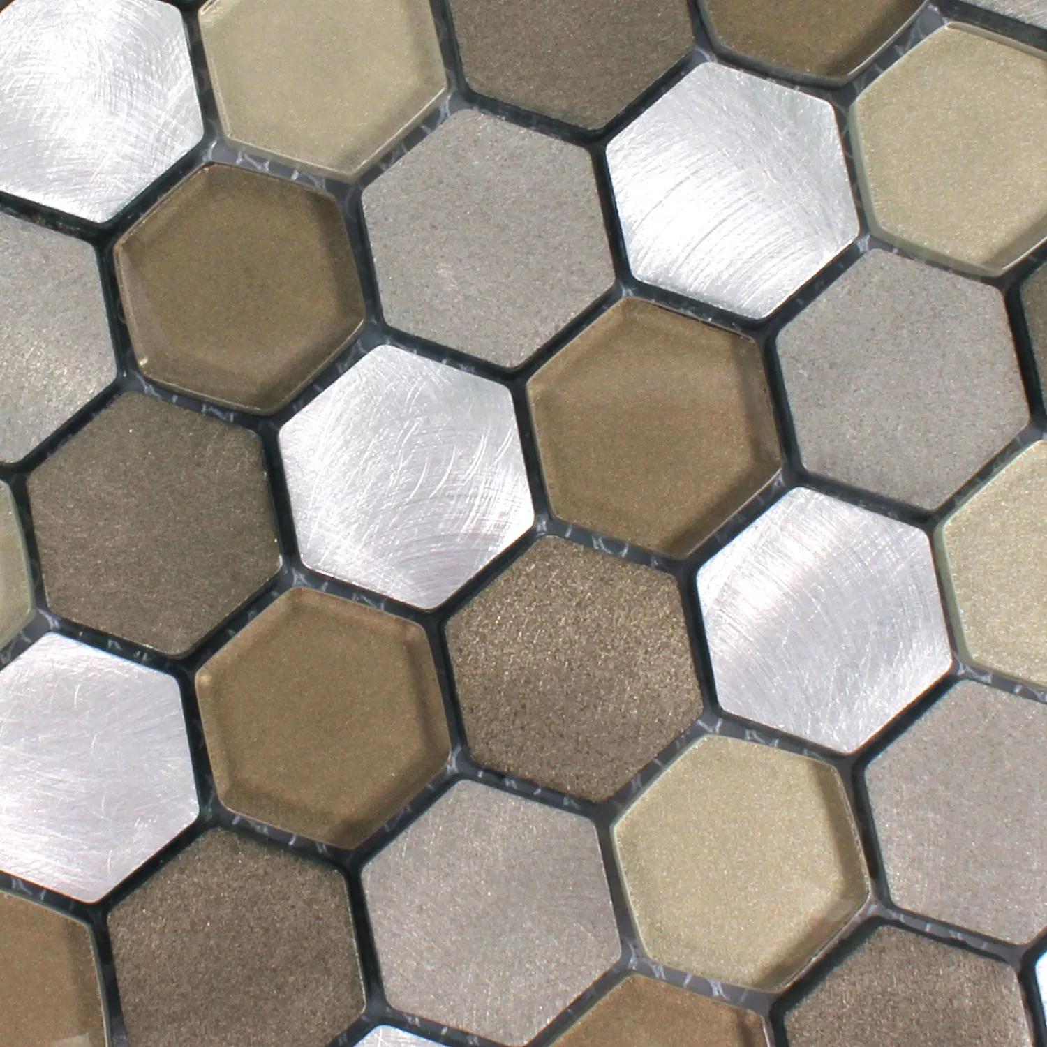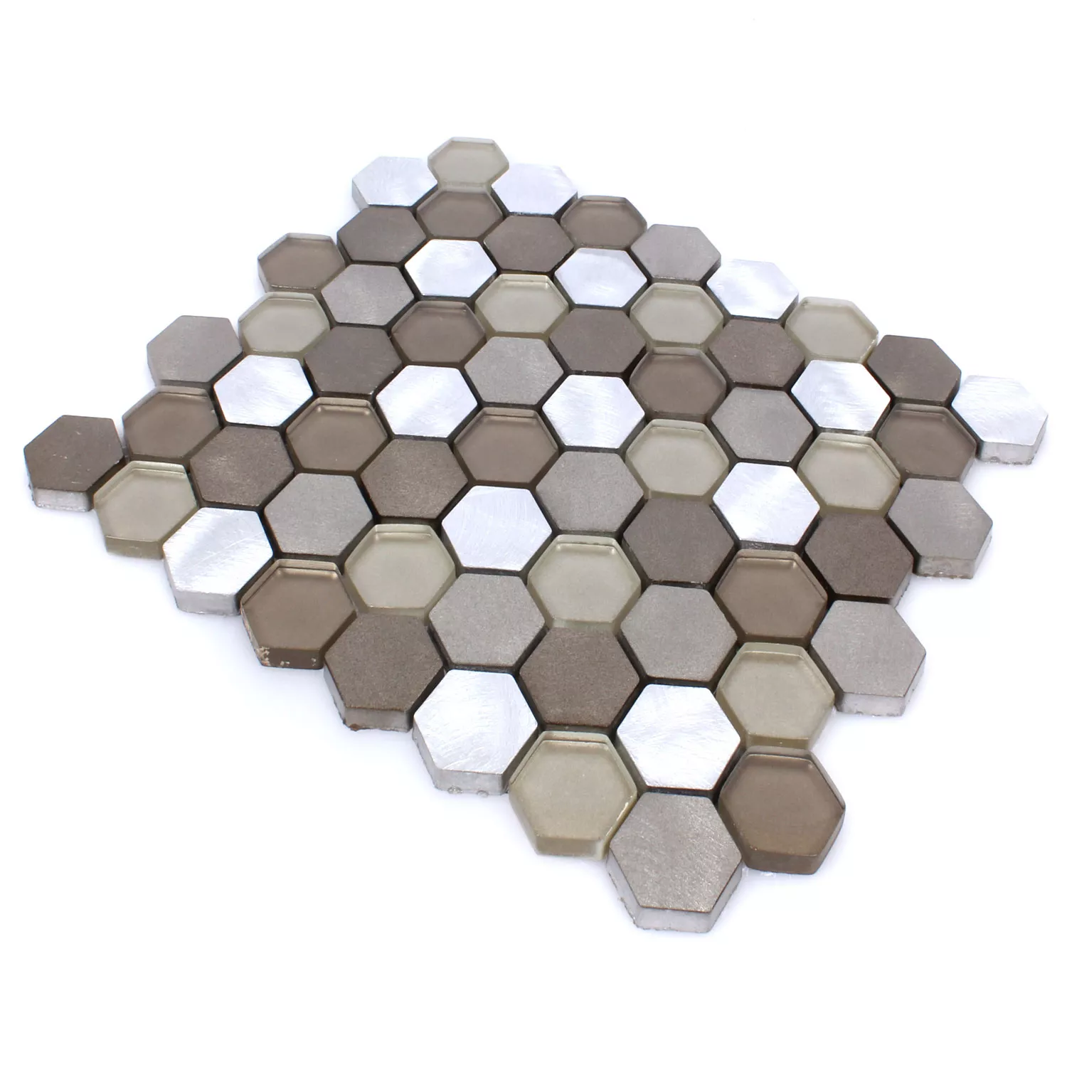 Échantillon Mosaïque Verre Alu Angela Hexagone Brun Argent
