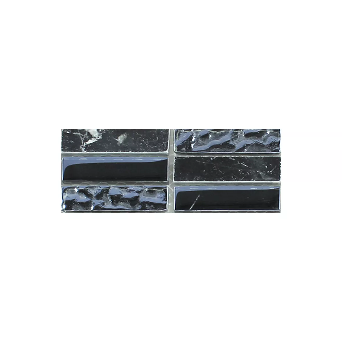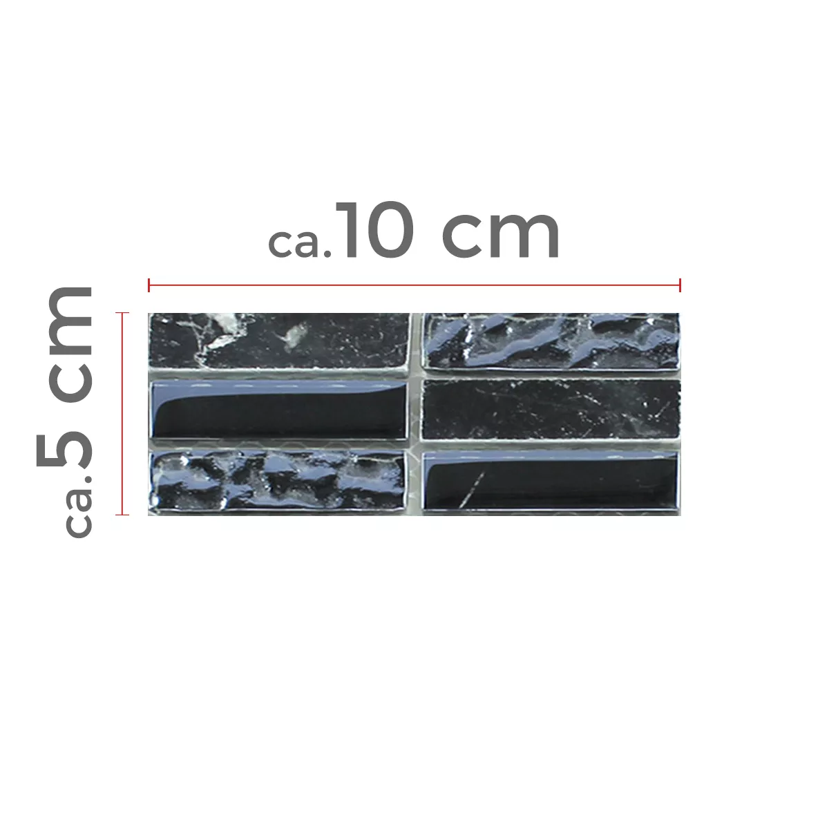Échantillon Mosaïque Verre Marbré Noir Cannelé