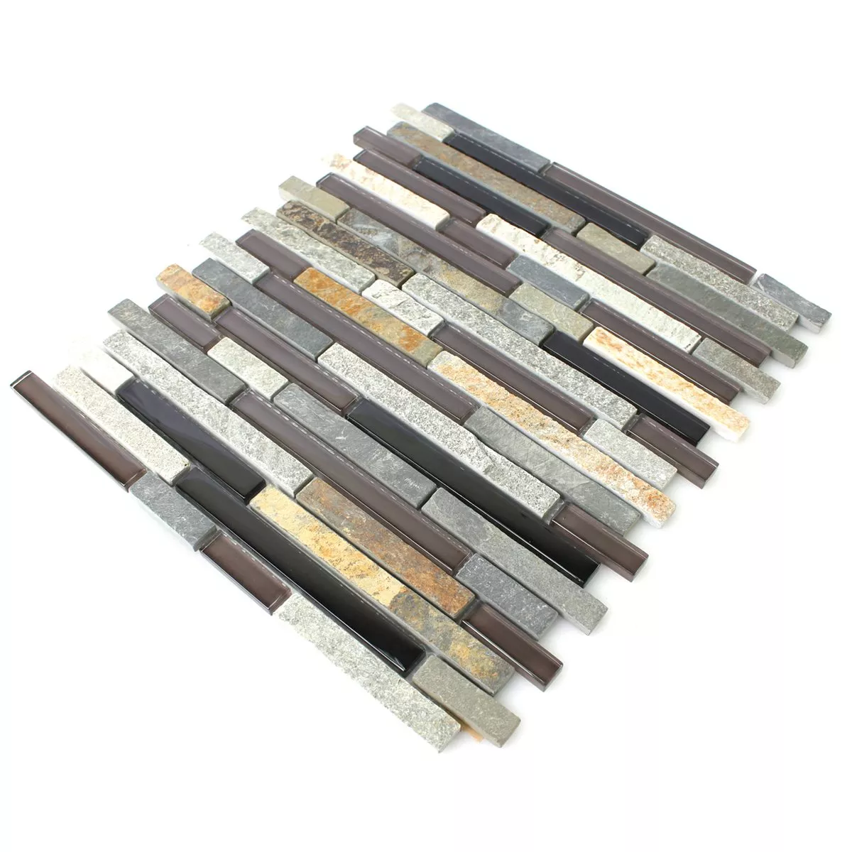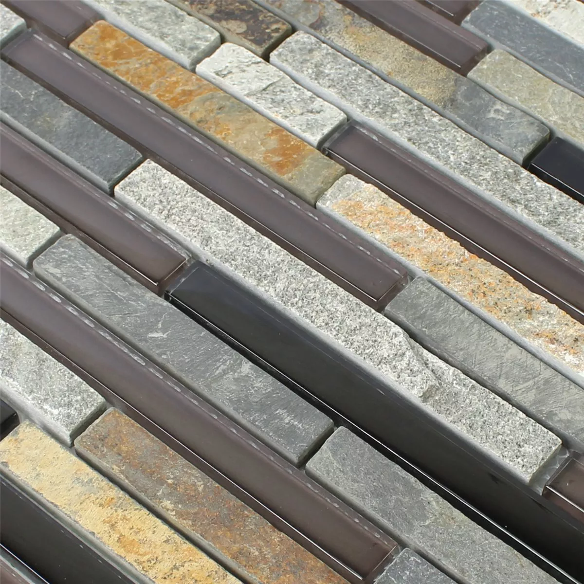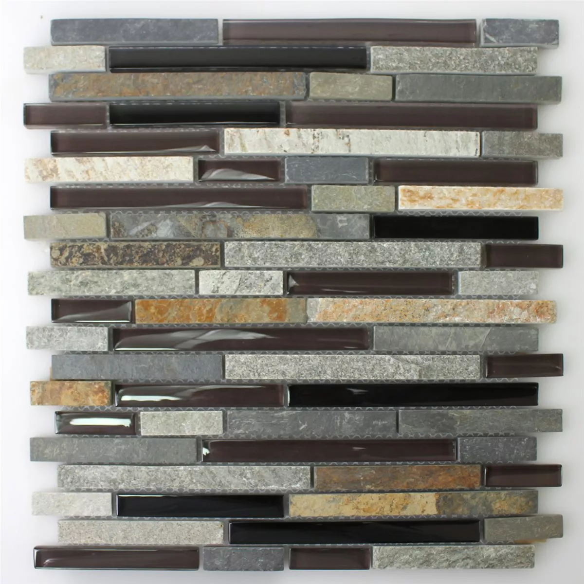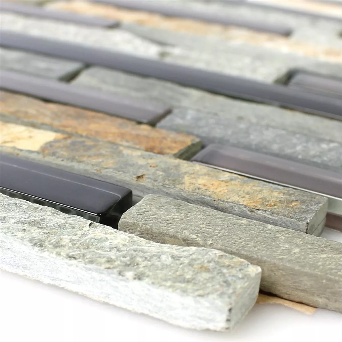 Échantillon Mosaïque Verre Pierre Naturelle Gris Beige Brun Mix