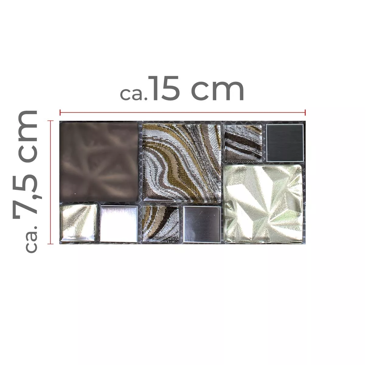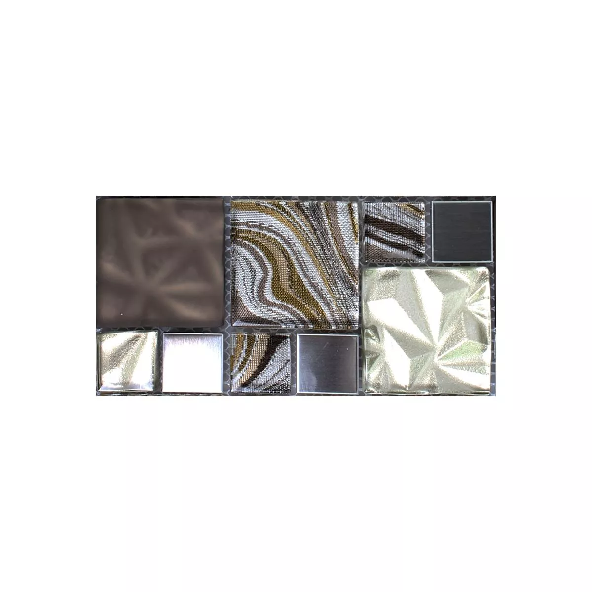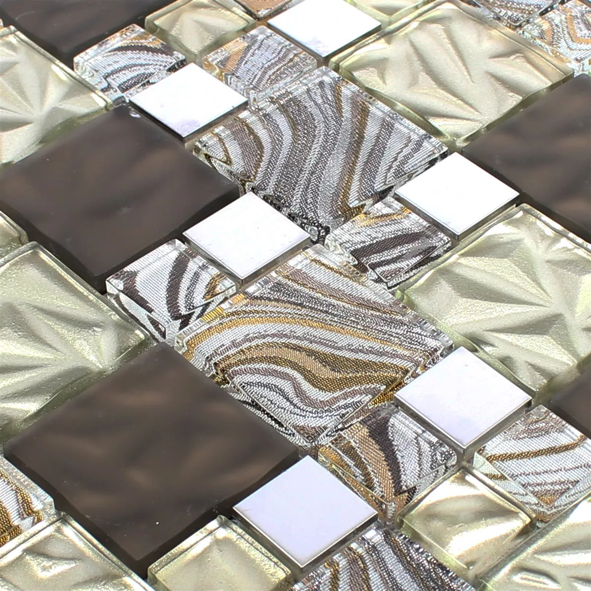Échantillon Verre Métal Acier Inoxydable Mosaïque Carrelage Zadar Beige Brun